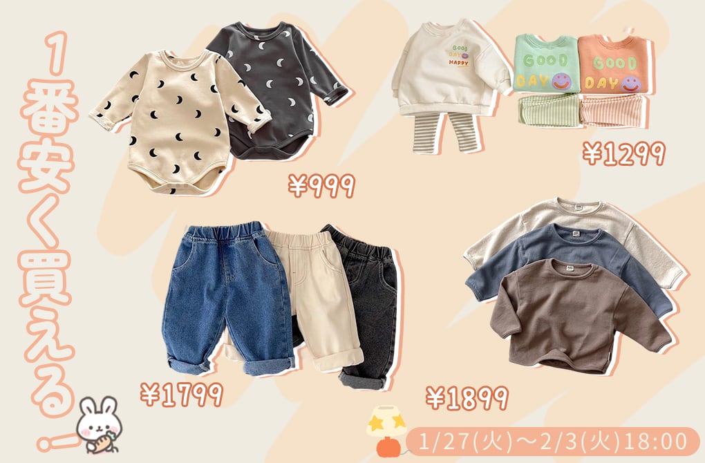 いつもBakerをご愛顧頂き誠にありがとうございます。🌷🌷🌷 お客様に感謝の気持ちを込めて、全品38%OFFセール開催中♪ 🎆 更に対象商品は特別価格999円でゲットできます♪ 数量限定で、早い者勝ち! 🕰時間限定:[2026/1/27(火)~2/3(火)18:00] 今だけお気に入りのお洋服は最安値で買えます。
