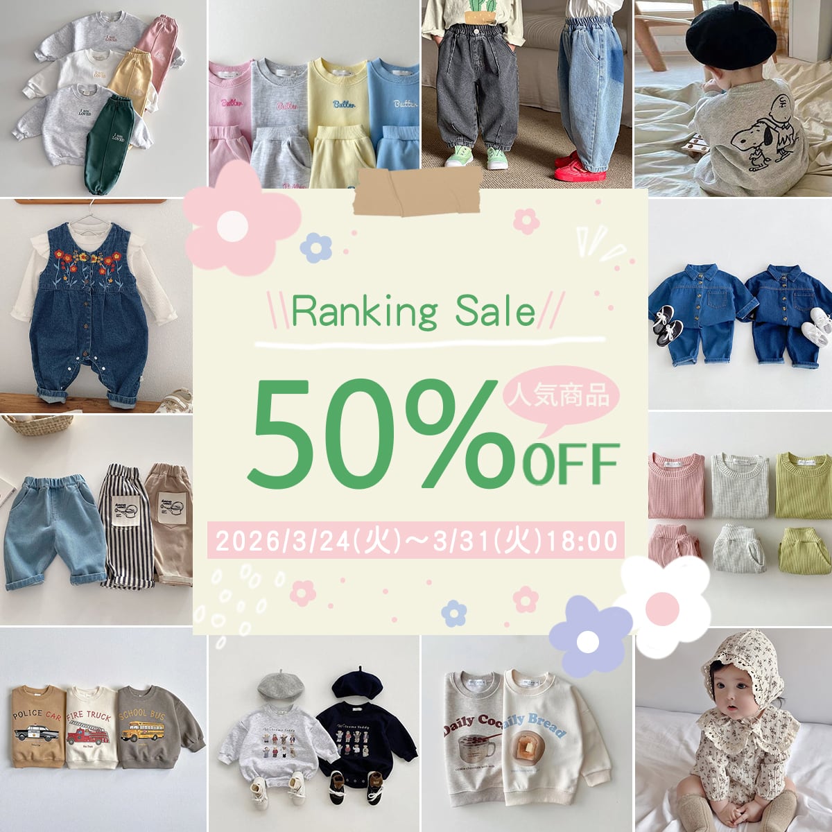 期間限定人気アイテム50%OFFセールを開催させていただきます。 数量限定で、今だけお気に入りのアイテムは最安値で買えます♪ ぜひこの機会、お見逃しなくご覧ください~ 時間限定:3/31(火)18:00までに