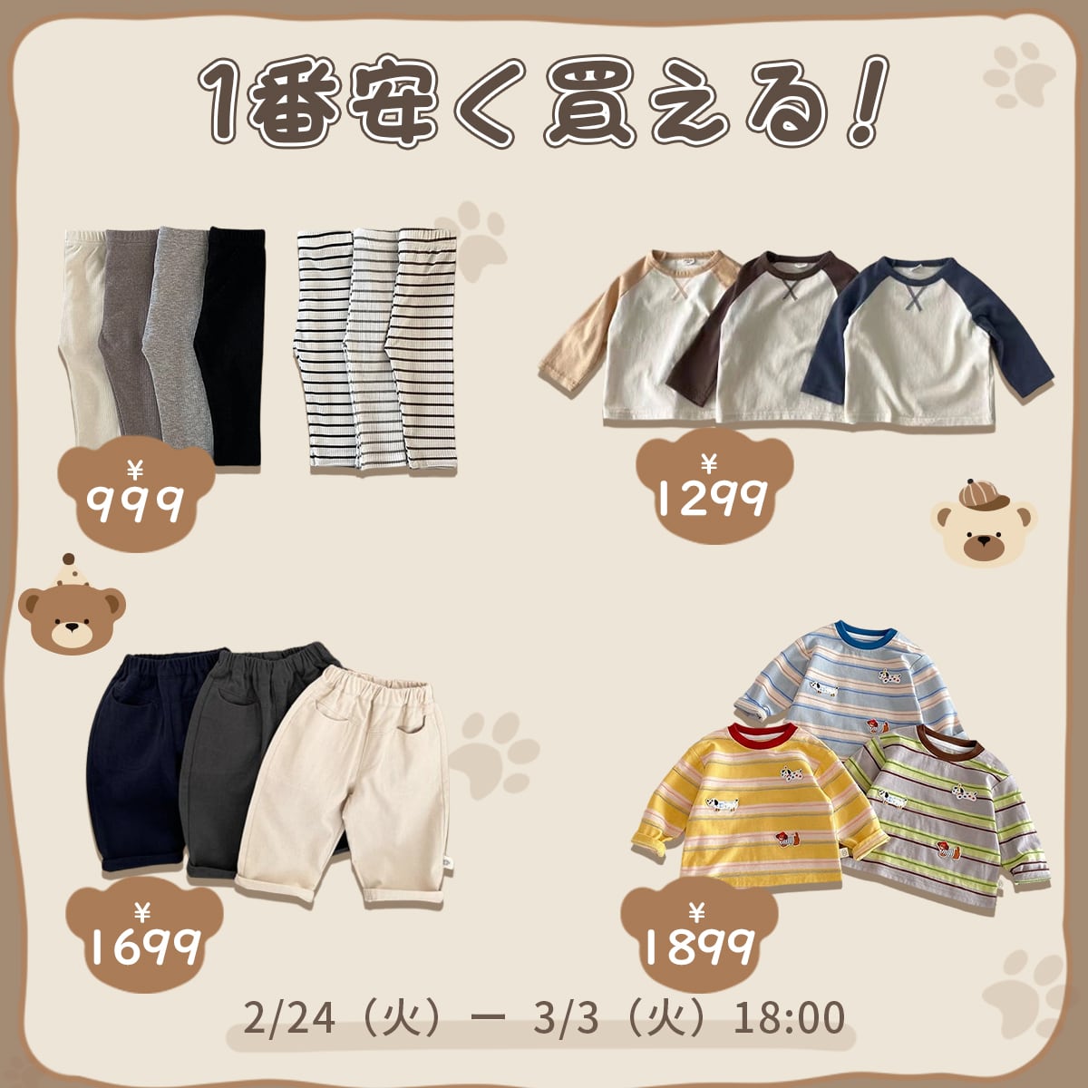 いつもBakerをご愛顧頂き誠にありがとうございます。🌷🌷🌷 お客様に感謝の気持ちを込めて、全品38%OFFセール開催中♪ 🎆 更に対象商品は特別価格999円でゲットできます♪ 数量限定で、早い者勝ち! 🕰時間限定:[2026/2/24(火)~3/3(火)18:00] 今だけお気に入りのお洋服は最安値で買えます。