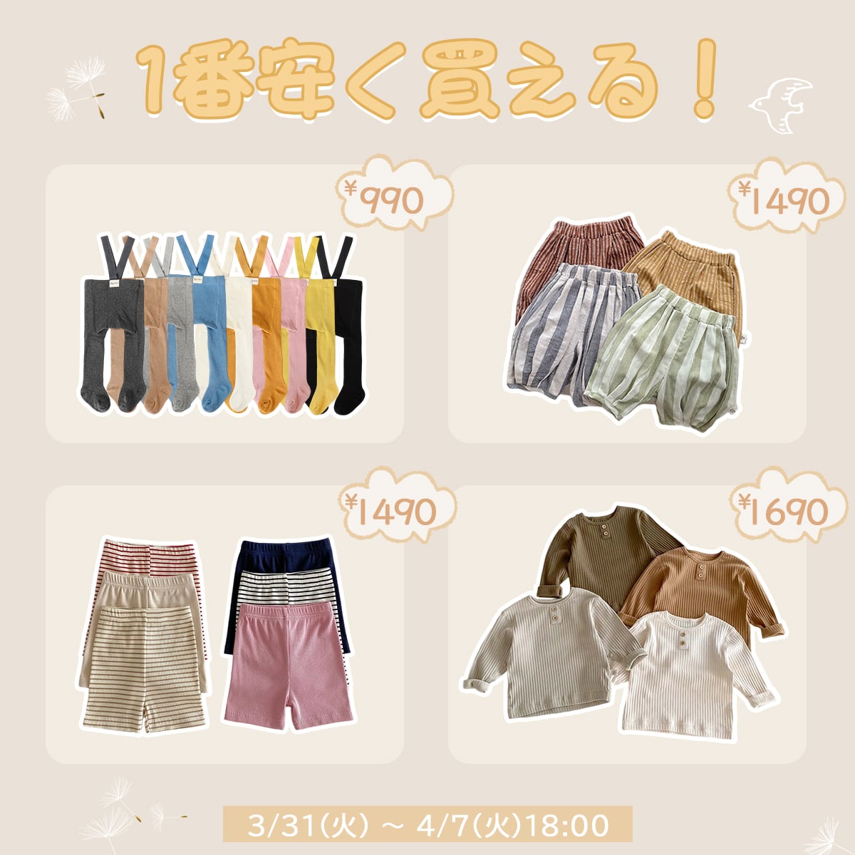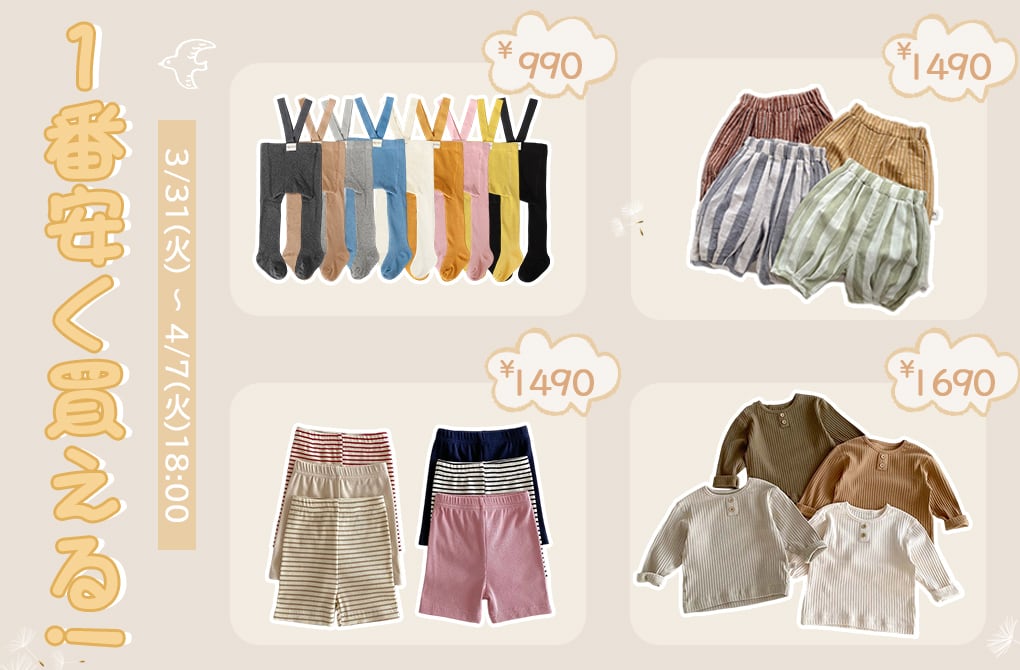 いつもBakerをご愛顧頂き誠にありがとうございます。🌷🌷🌷 お客様に感謝の気持ちを込めて、全品38%OFFセール開催中♪ 🎆 更に対象商品は特別価格999円でゲットできます♪ 数量限定で、早い者勝ち! 🕰時間限定:[2026/3/31(火)~4/7(火)18:00] 今だけお気に入りのお洋服は最安値で買えます。