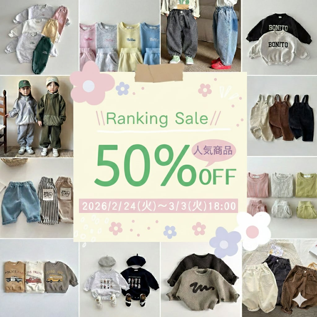 期間限定人気アイテム50%OFFセールを開催させていただきます。 数量限定で、今だけお気に入りのアイテムは最安値で買えます♪ ぜひこの機会、お見逃しなくご覧ください~ 時間限定:3/3(火)18:00までに