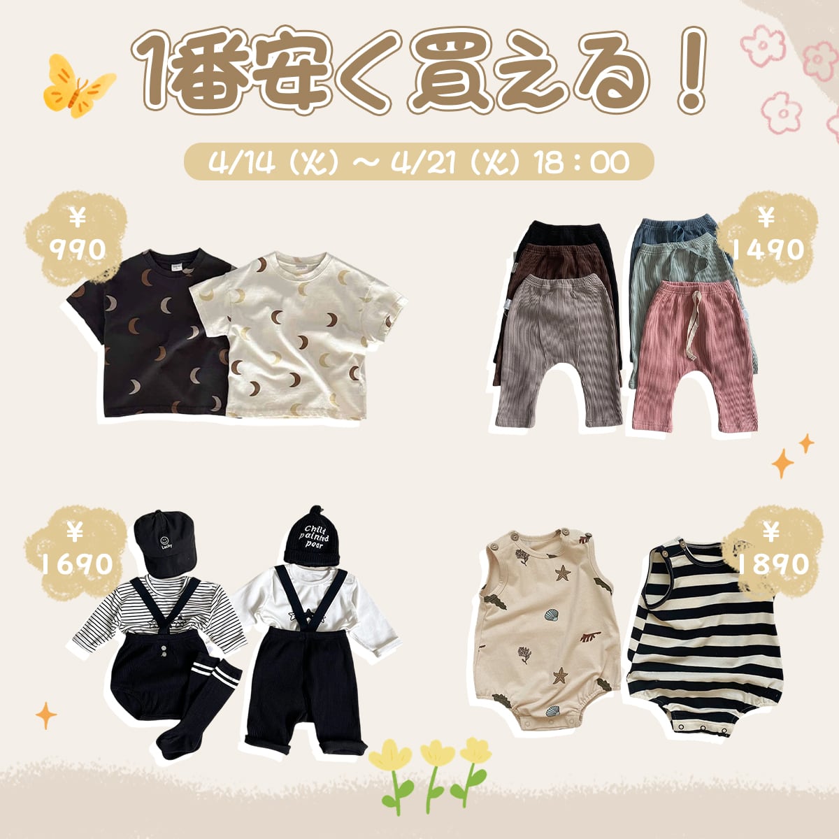 いつもBakerをご愛顧頂き誠にありがとうございます。🌷🌷🌷 お客様に感謝の気持ちを込めて、全品38%OFFセール開催中♪ 🎆 更に対象商品は特別価格999円でゲットできます♪ 数量限定で、早い者勝ち! 🕰時間限定:[2026/4/14(火)~4/21(火)18:00] 今だけお気に入りのお洋服は最安値で買えます。