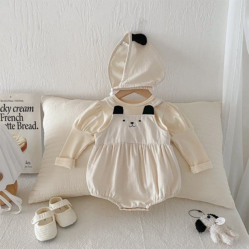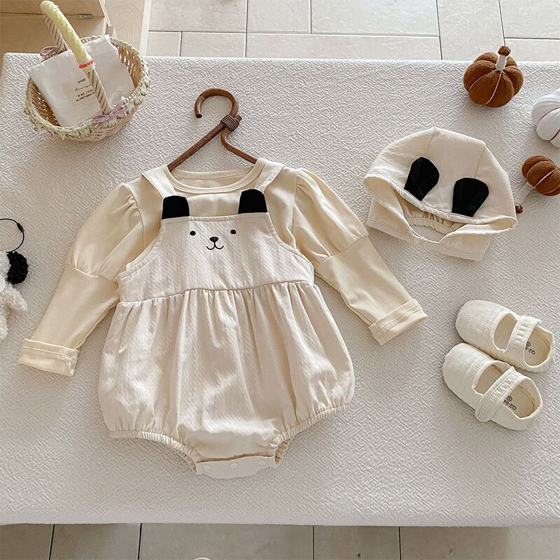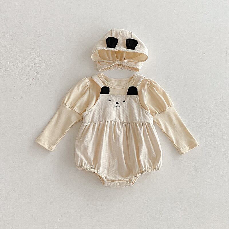 【BABY】秋新作帽子付き熊デザインロンパース