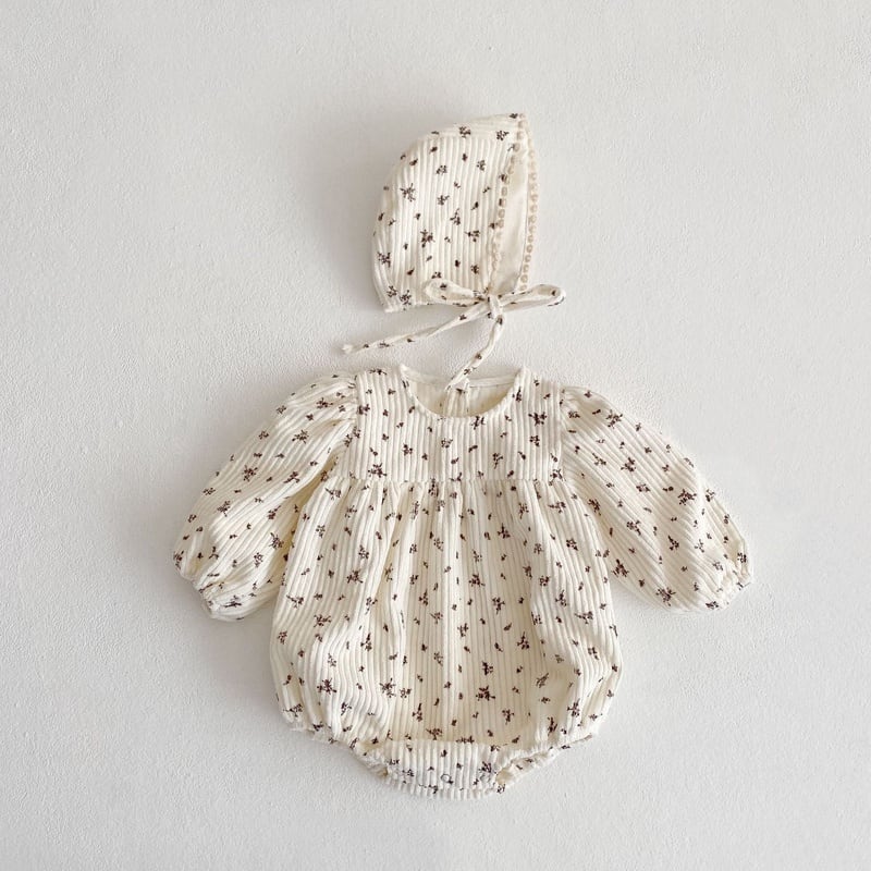 【BABY】フラワー総柄プリントコットンロンパース&帽子