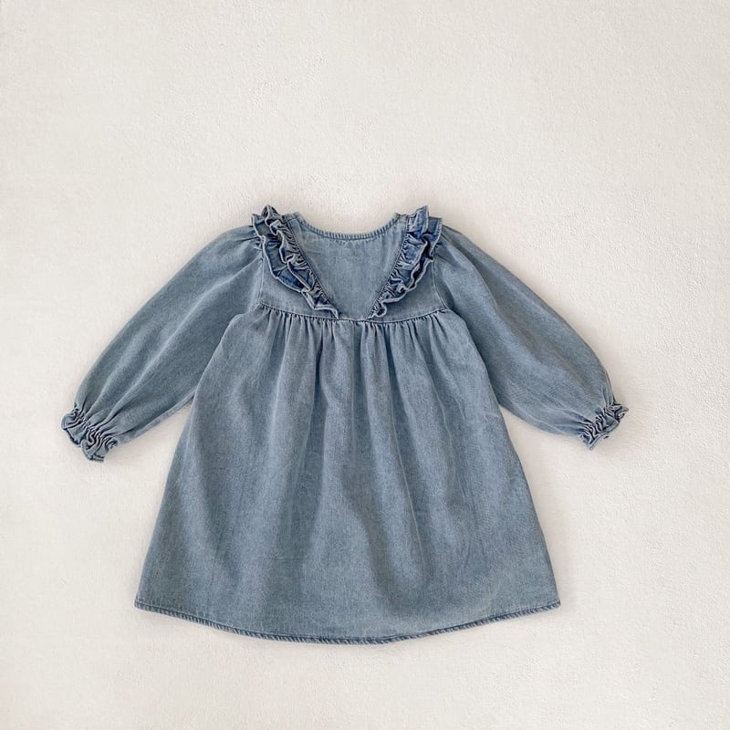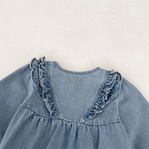 【BABY&KID】フリル袖口ブルーデニムロンパースorワンピース