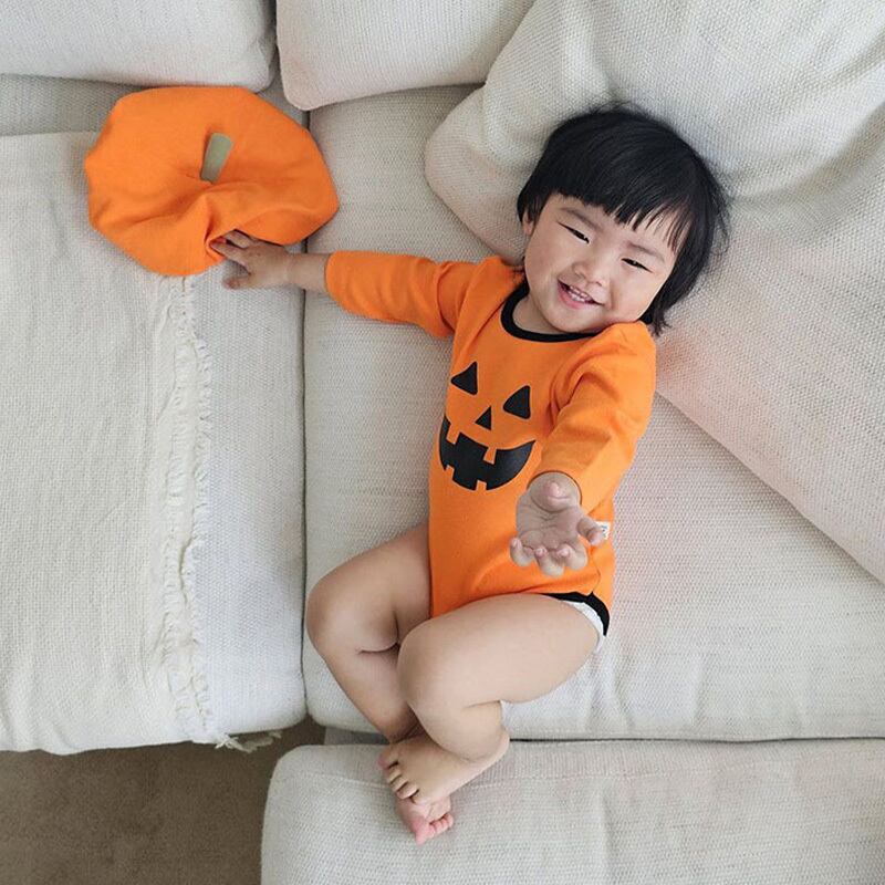 【BABY】ハロウィンパンプキン柄ロンパース&帽子