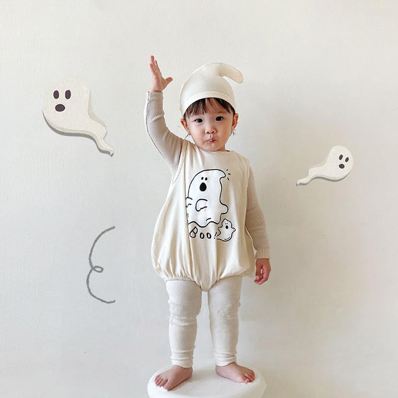 【BABY】ハロウィンブラックゴースト柄ロンパース