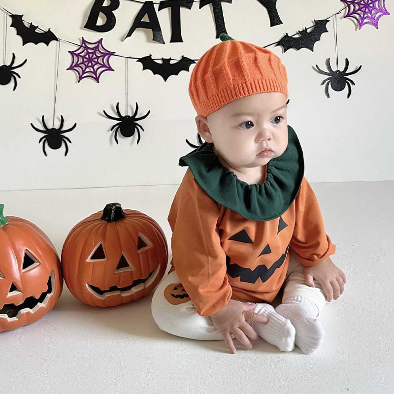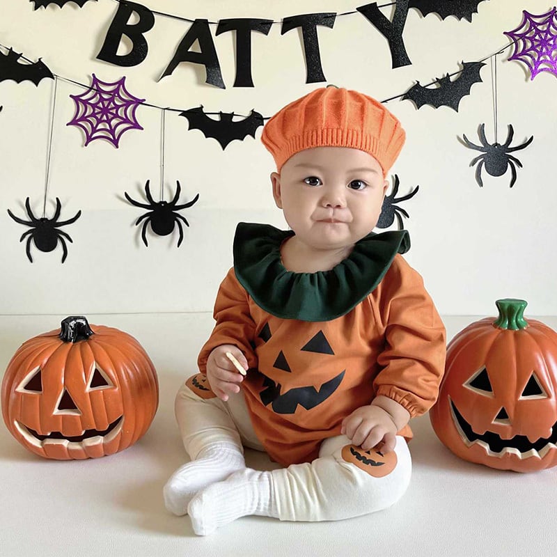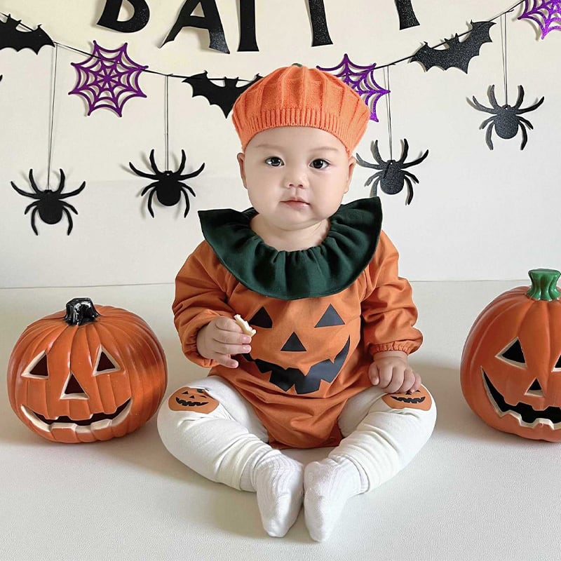 【BABY】ハロウィンオレンジカボチャロンパース