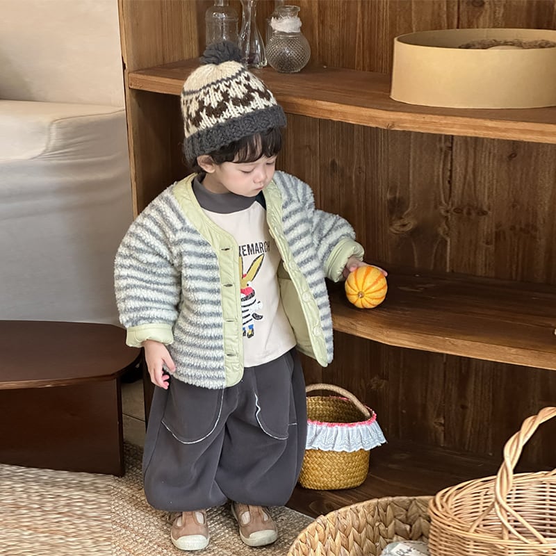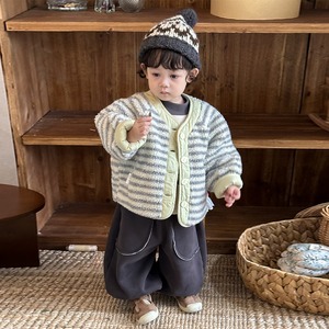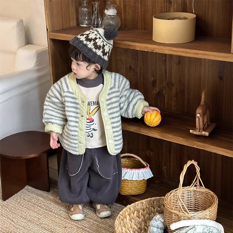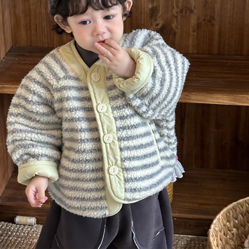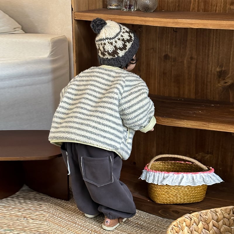【BABY&KID】冬作ストライプ柄フリースアウター