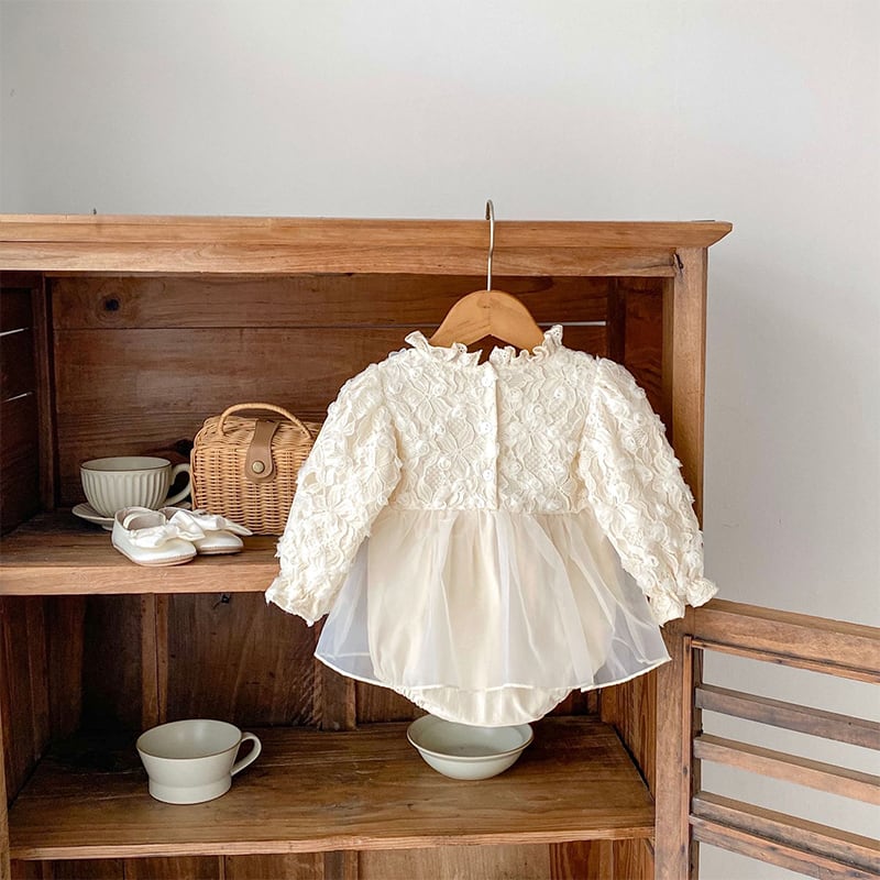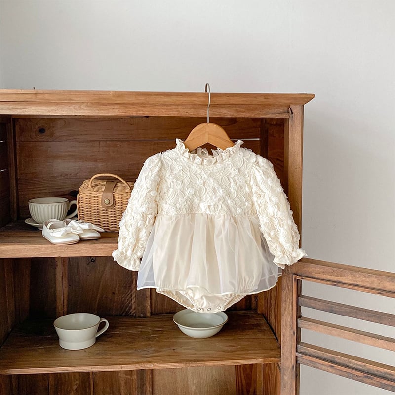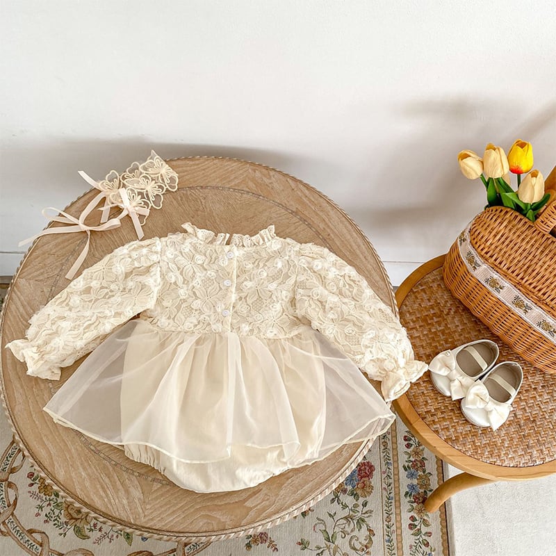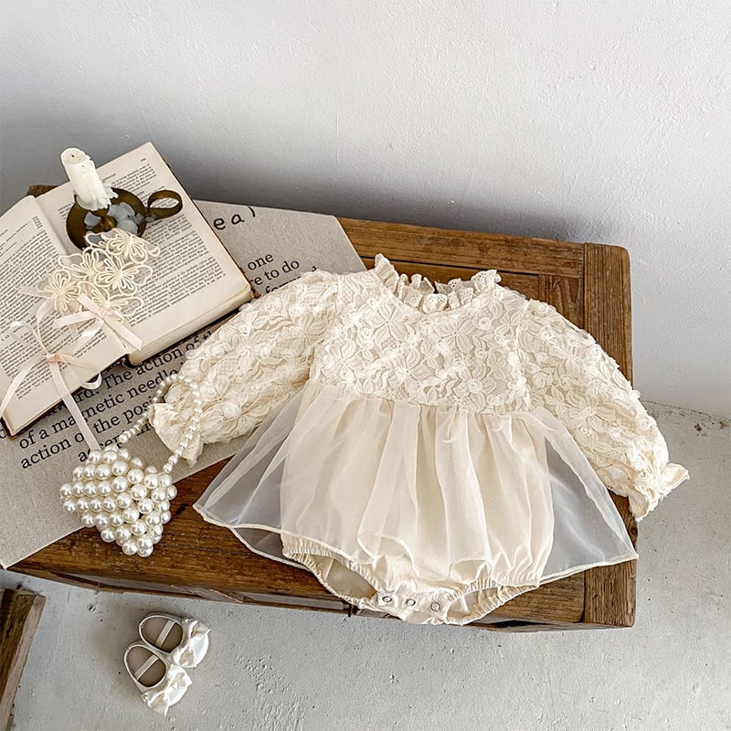【BABY】秋作レースフリル襟ロンパース