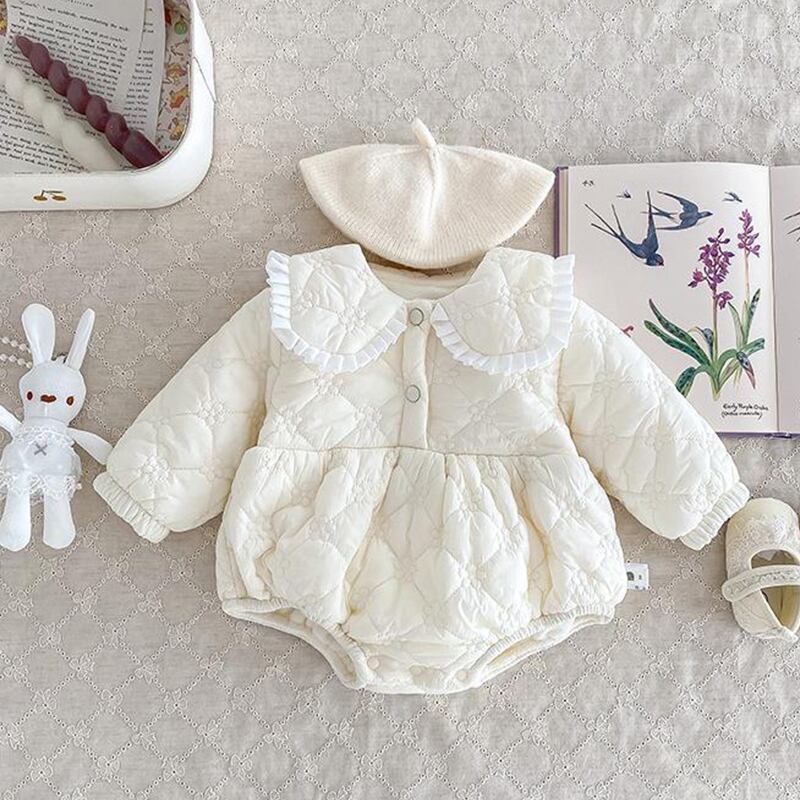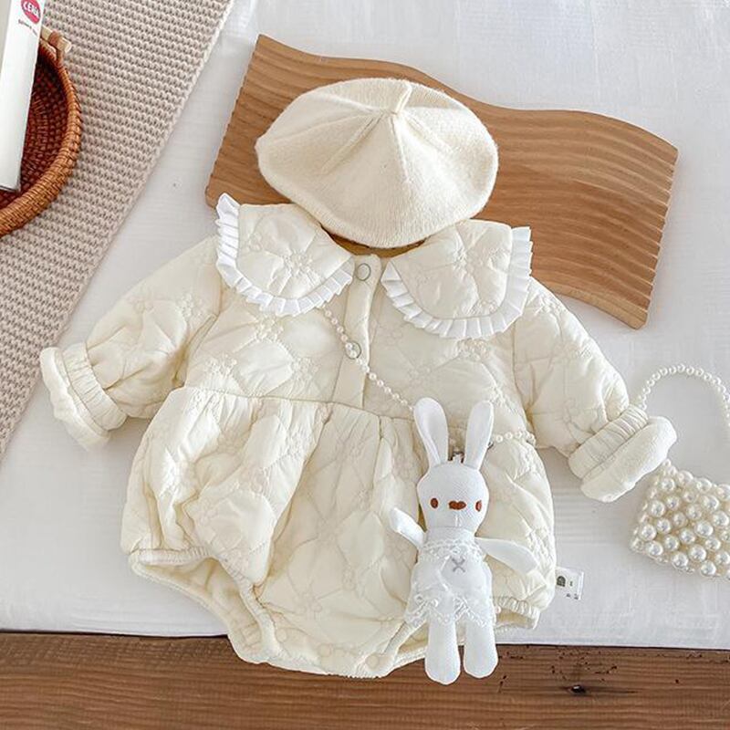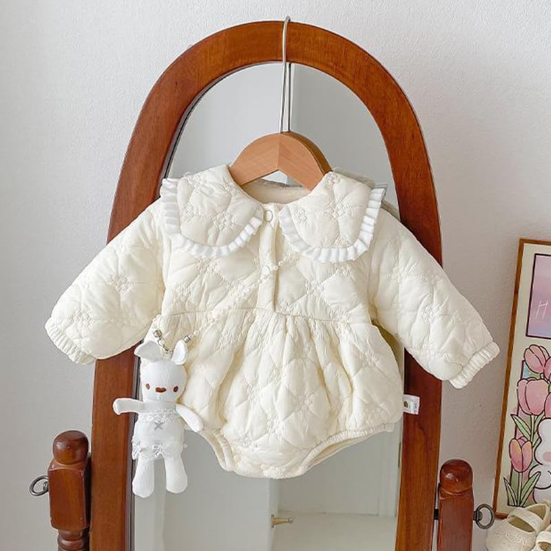 【BABY&KID】冬作うさぎ中綿レース襟ロンパース