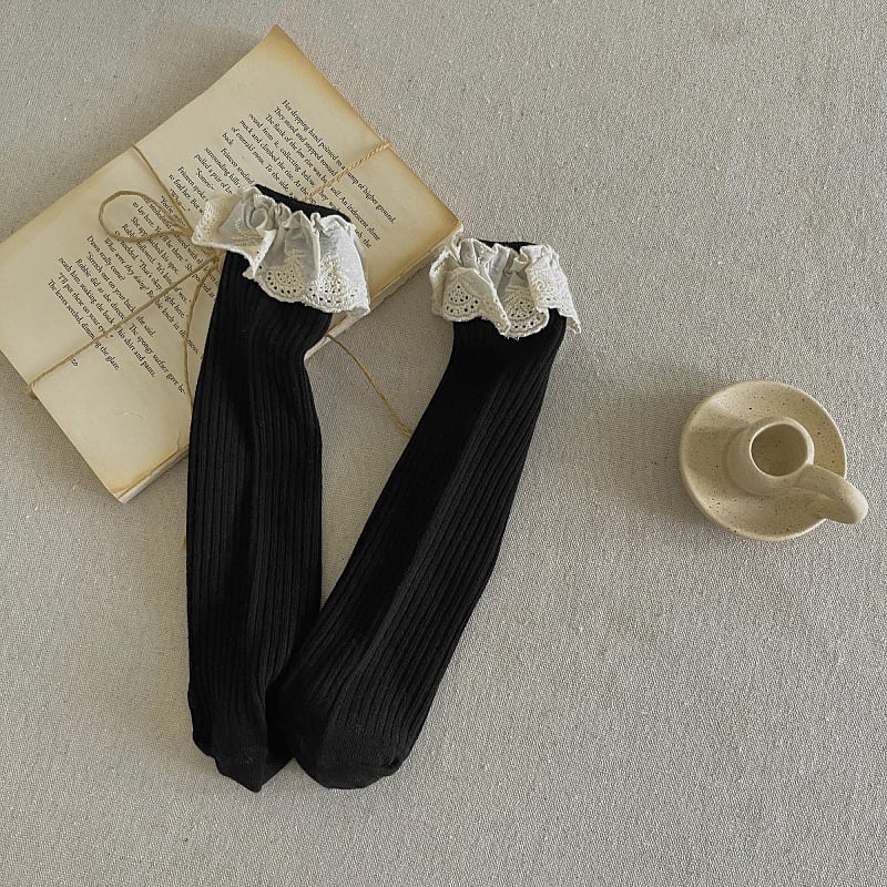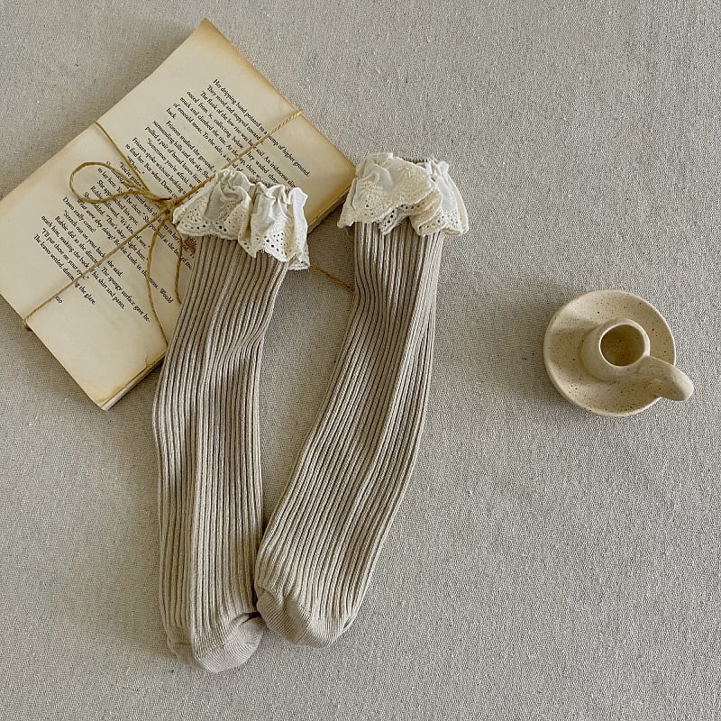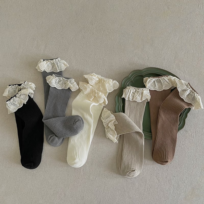 【BABY&KID】春作ノンヒールレーストリム付きソックス