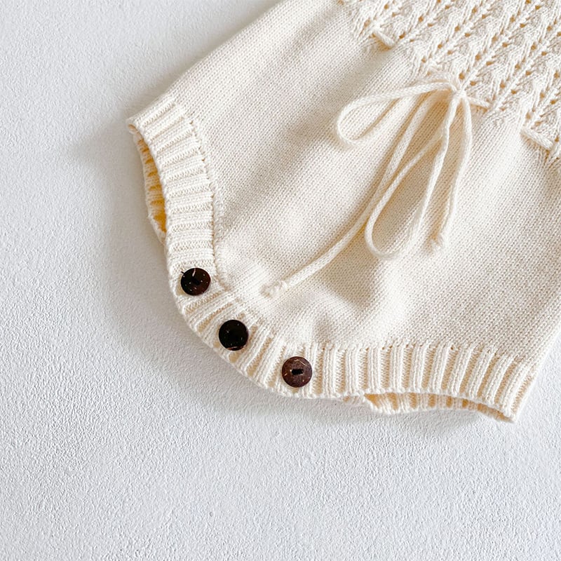 【BABY&KID】春作レース編みリボン付きニットロンパース