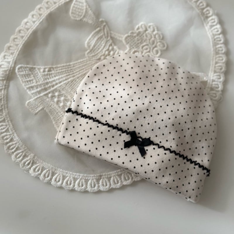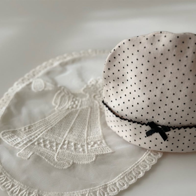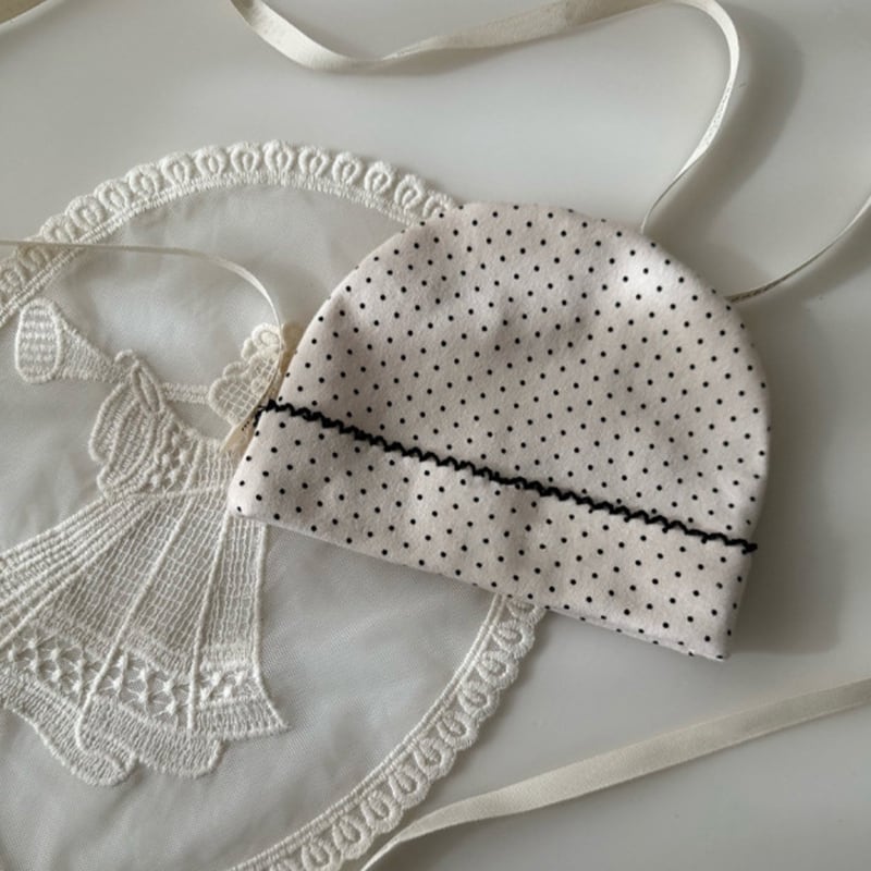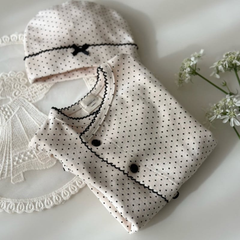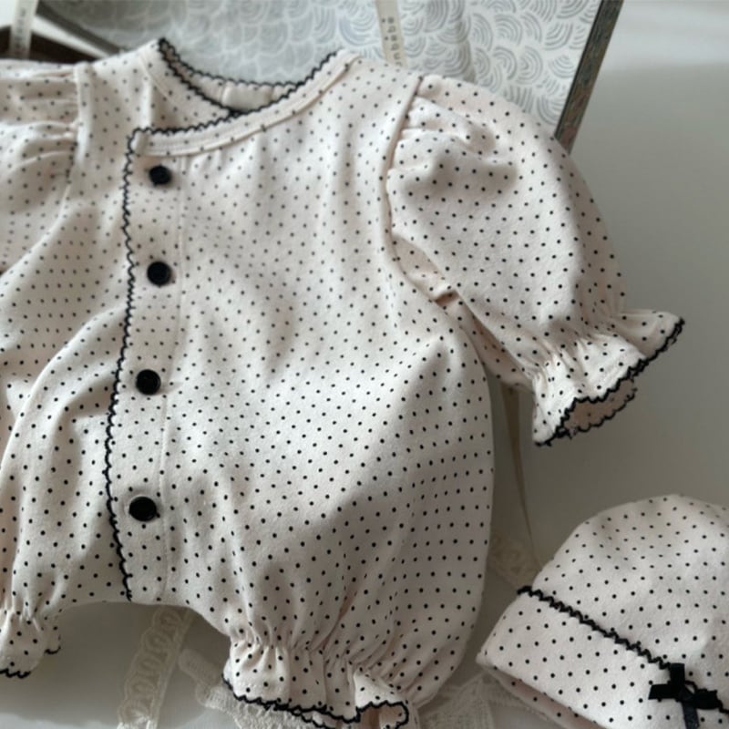 【BABY】春作ドット柄フリル付きロンパース&帽子