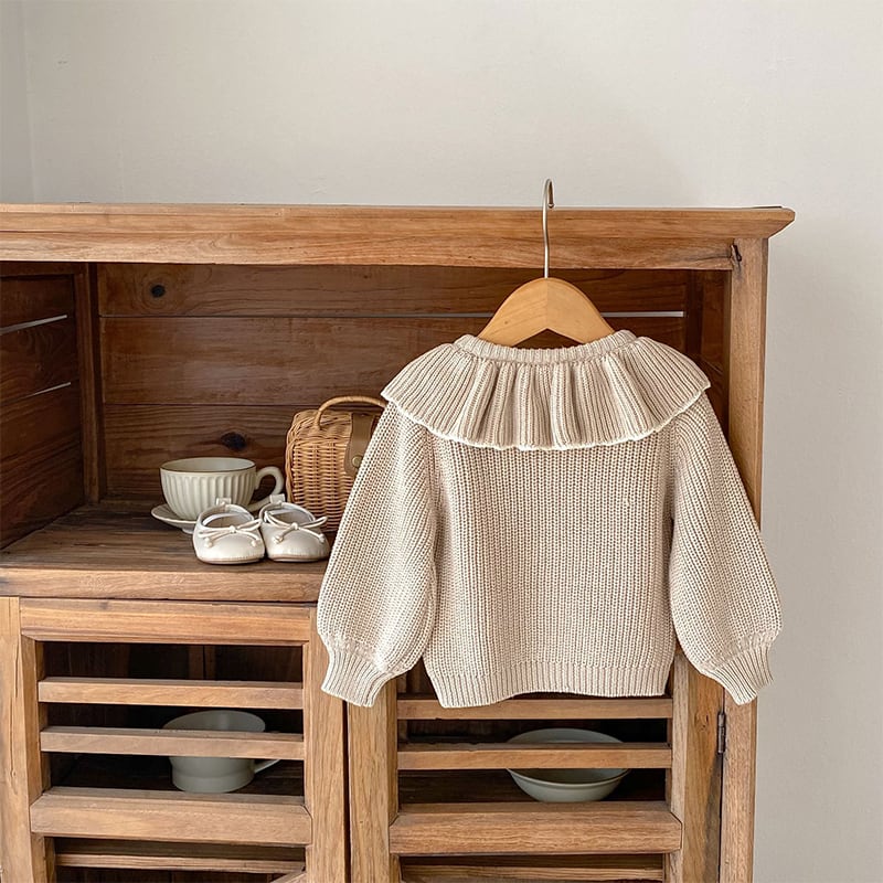 【BABY&KID】春作フリル襟ニットカーディガン