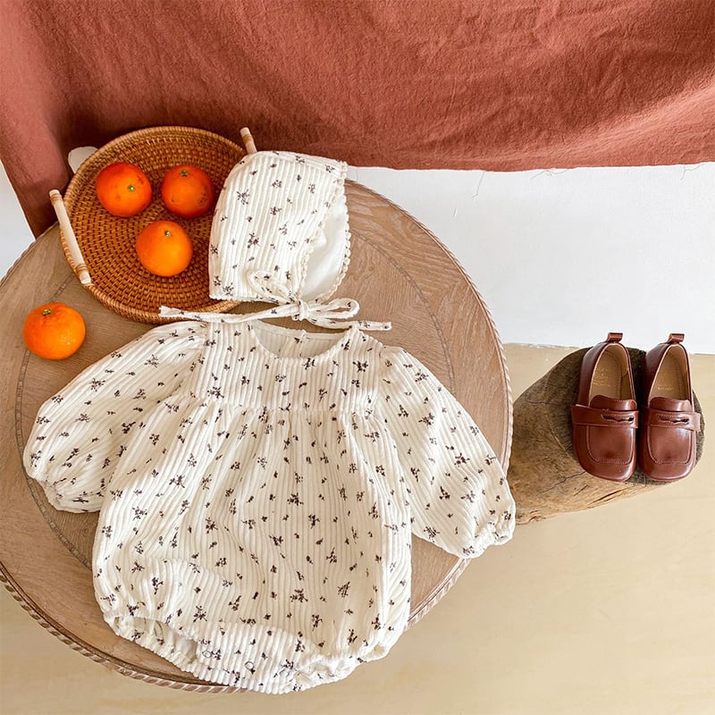 【BABY】春作ふんわりコーデュロイロンパース&帽子付き