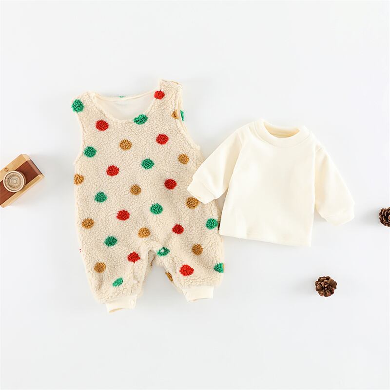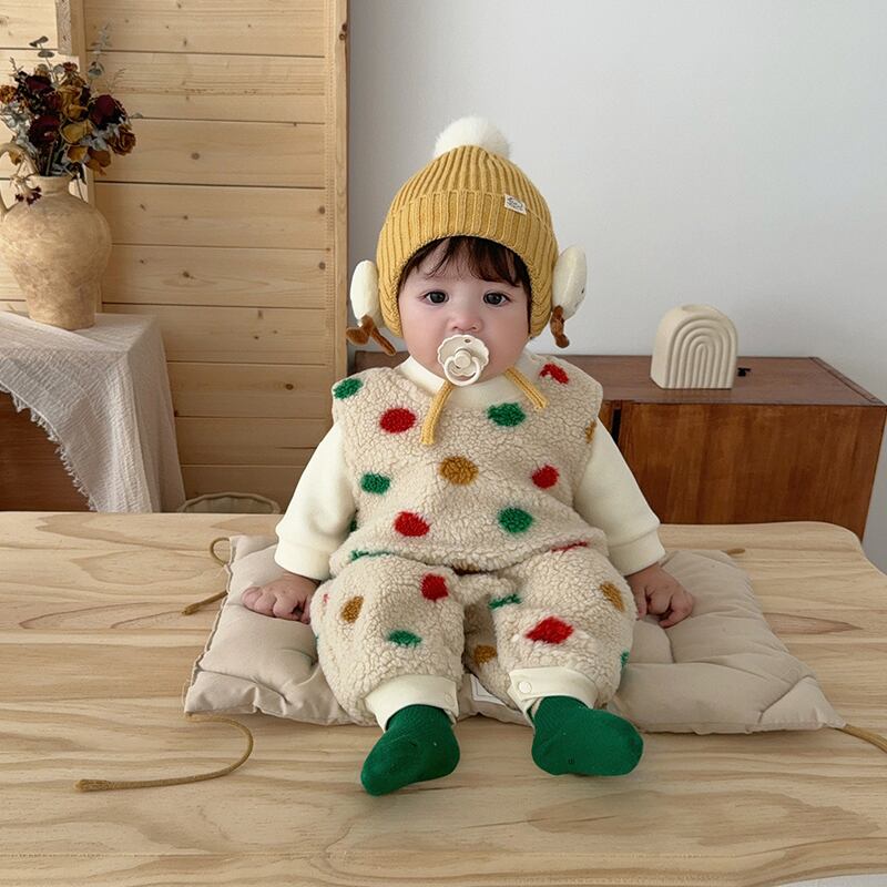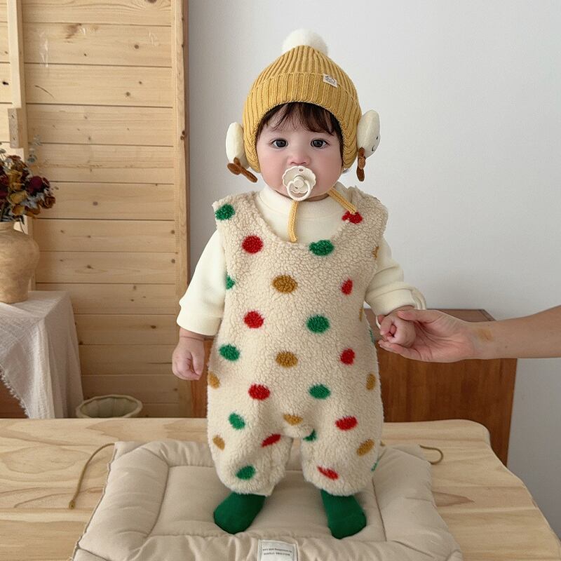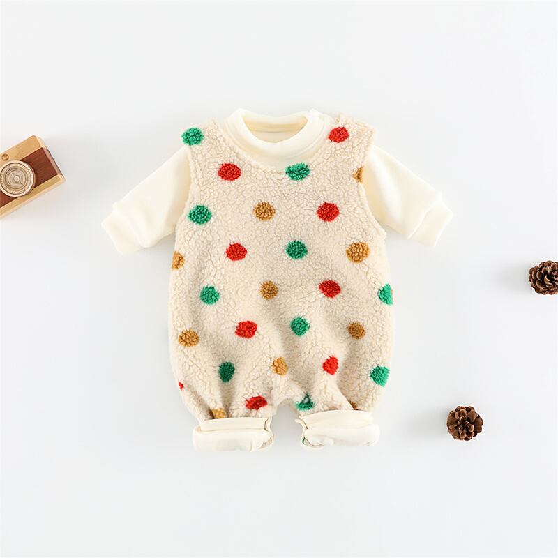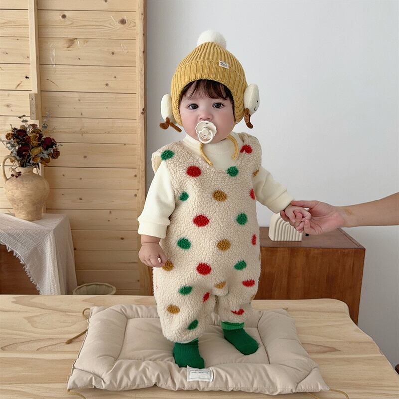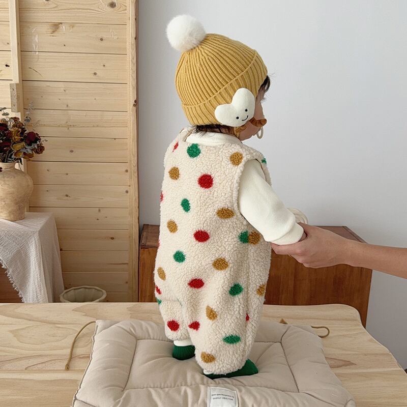 【BABY&KID】冬作カラフルドット柄ボア連体服&インナーシャツ