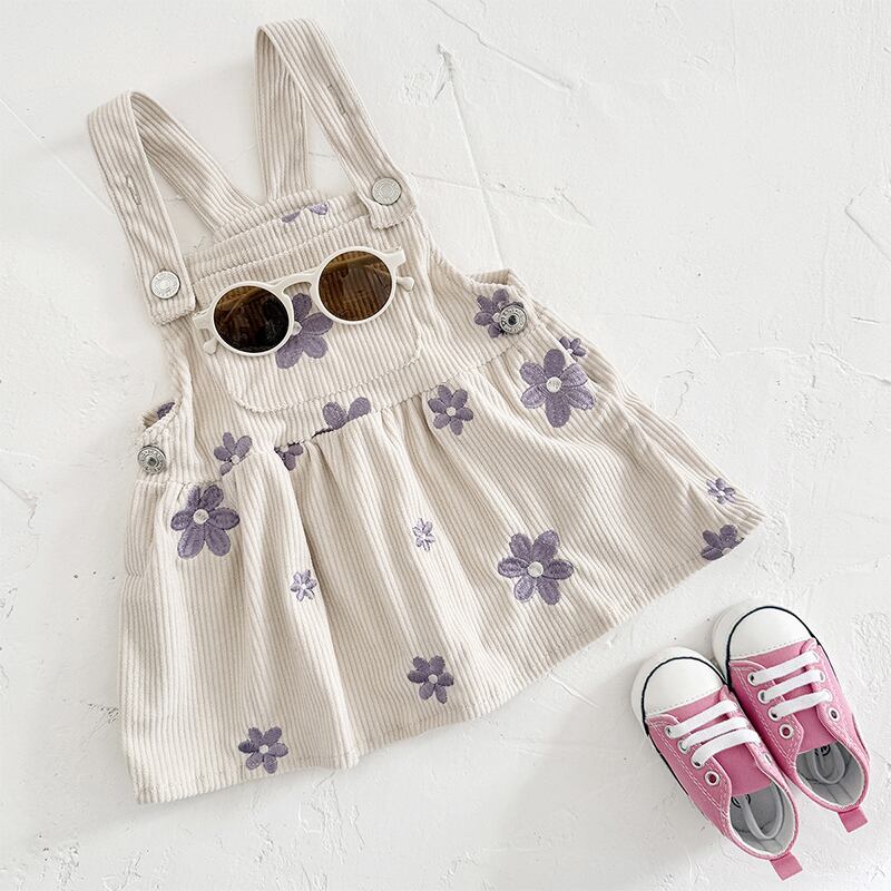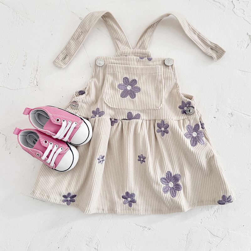 【BABY&KID】春作パープル花柄刺しゅうサロペットワンピース