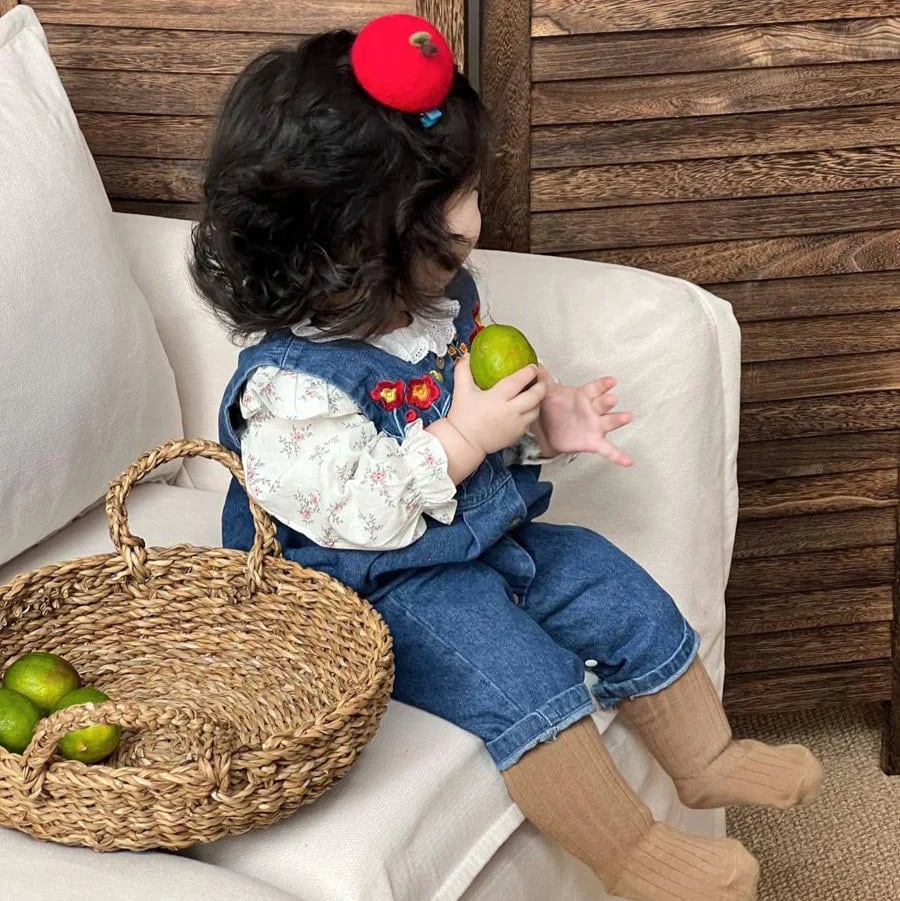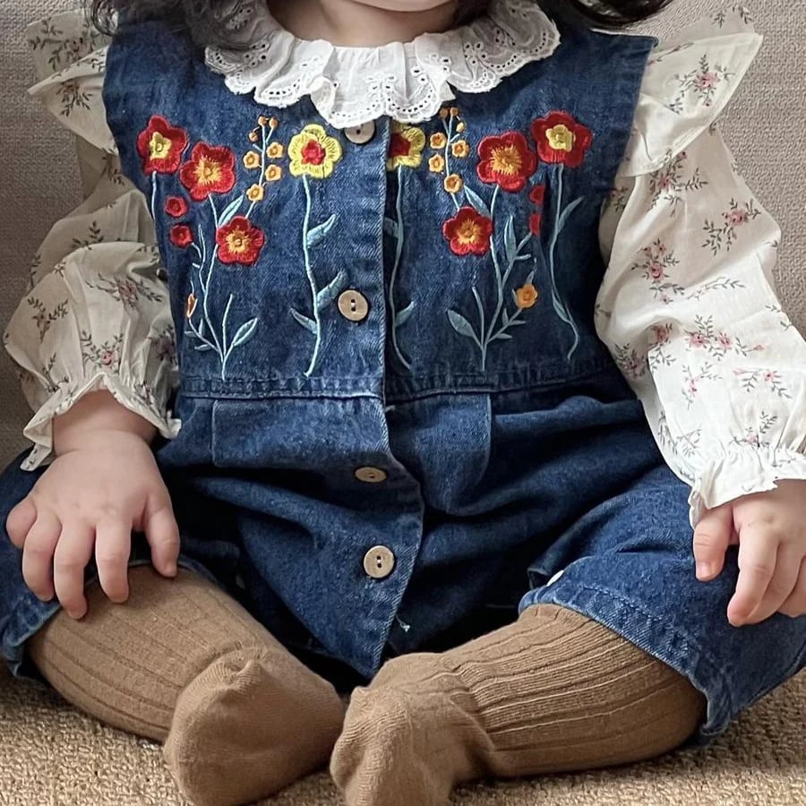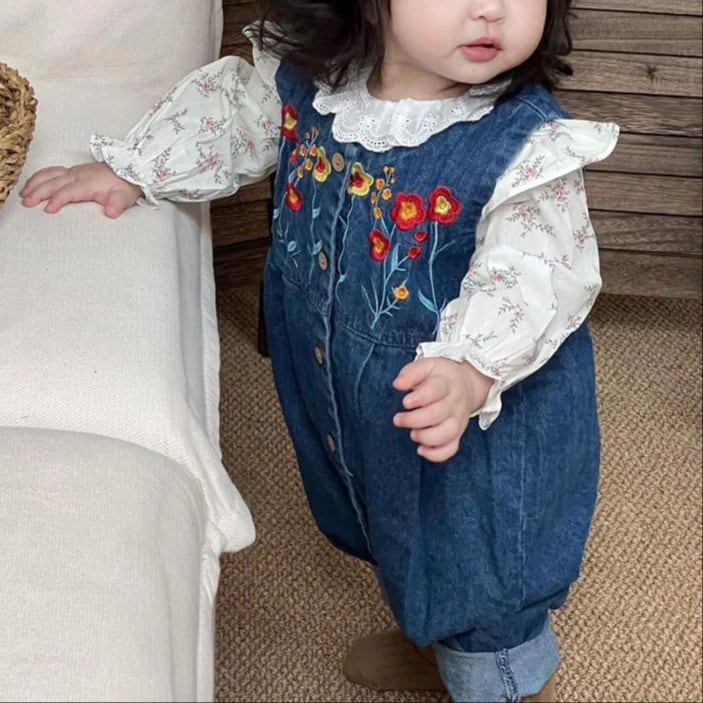 【BABY】春作フリルインナーシャツ&刺繍デニムサロペットセット【予約販売2週】