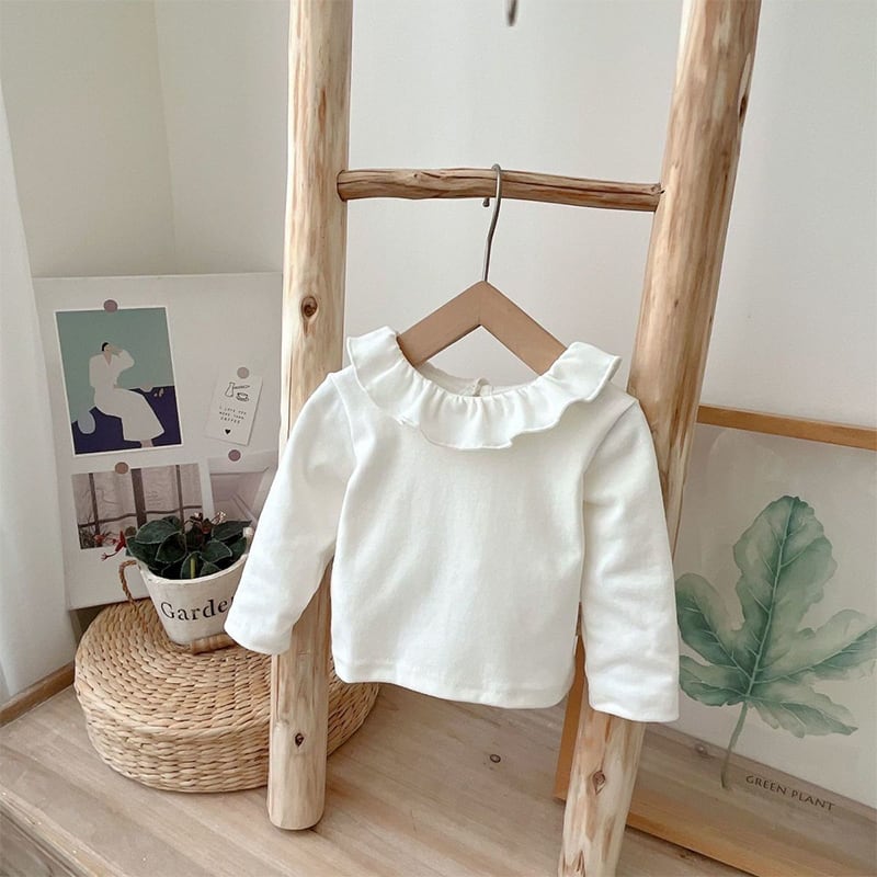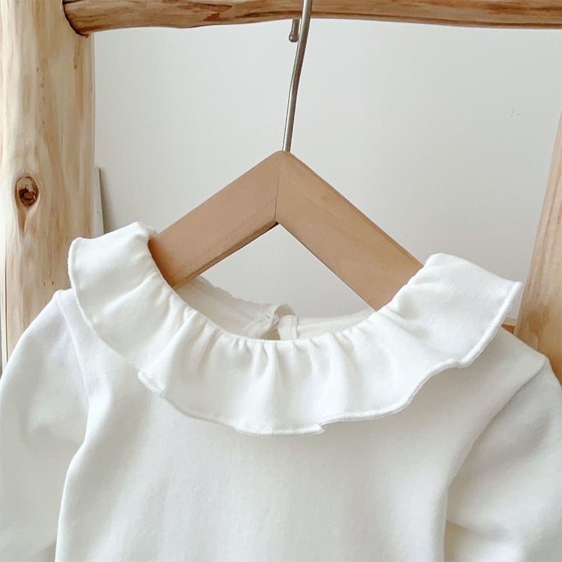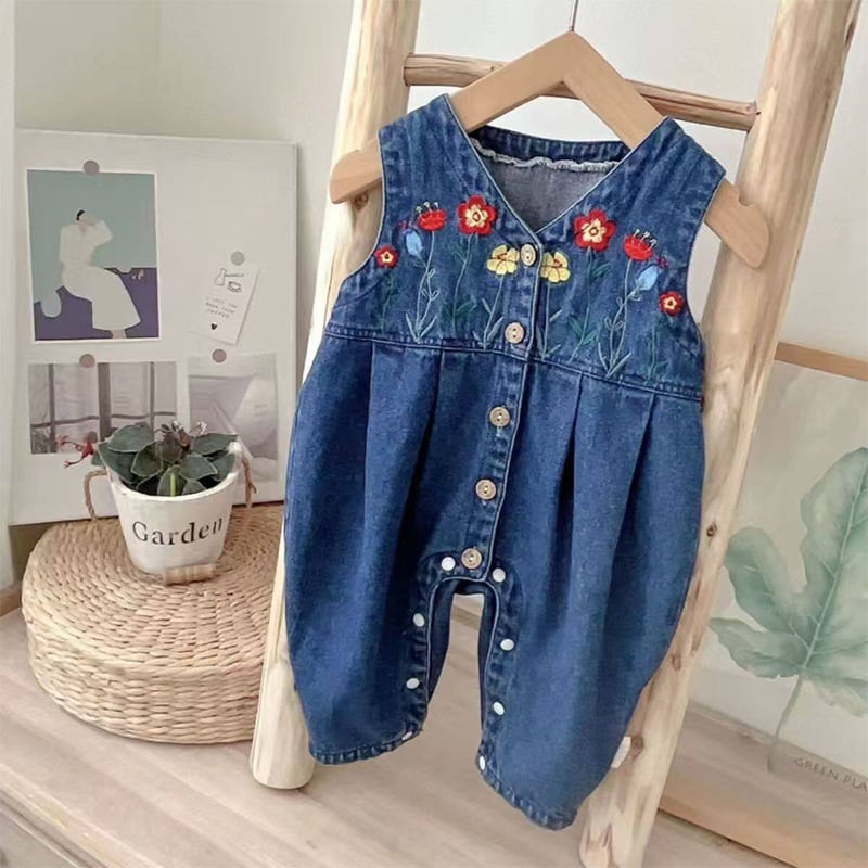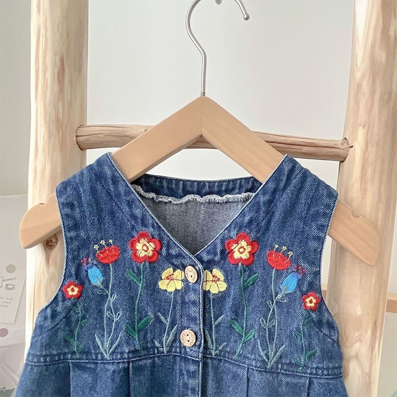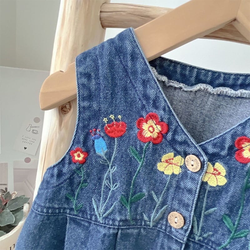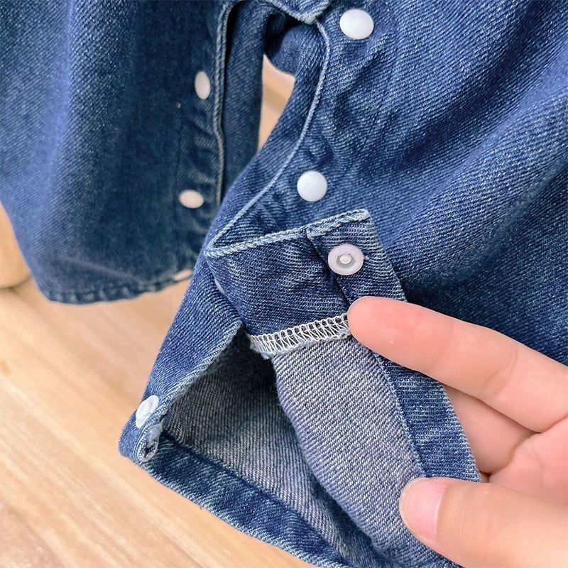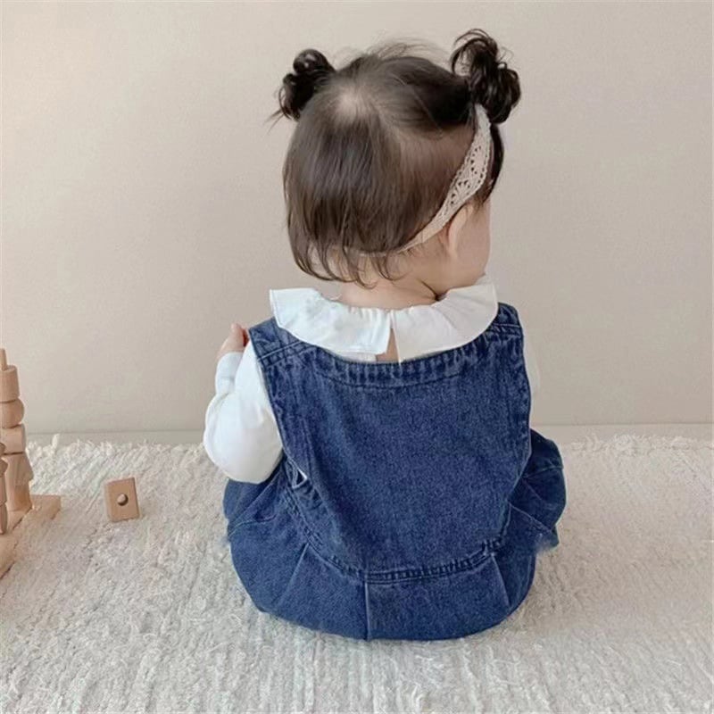 【BABY】春作フリルインナーシャツ&刺繍デニムサロペットセット
