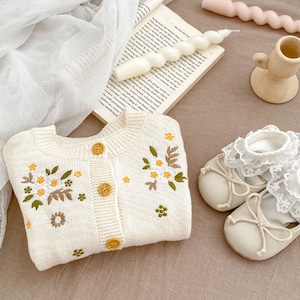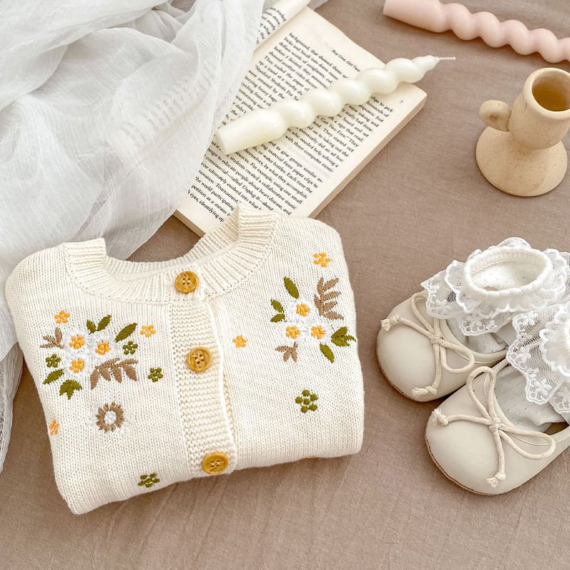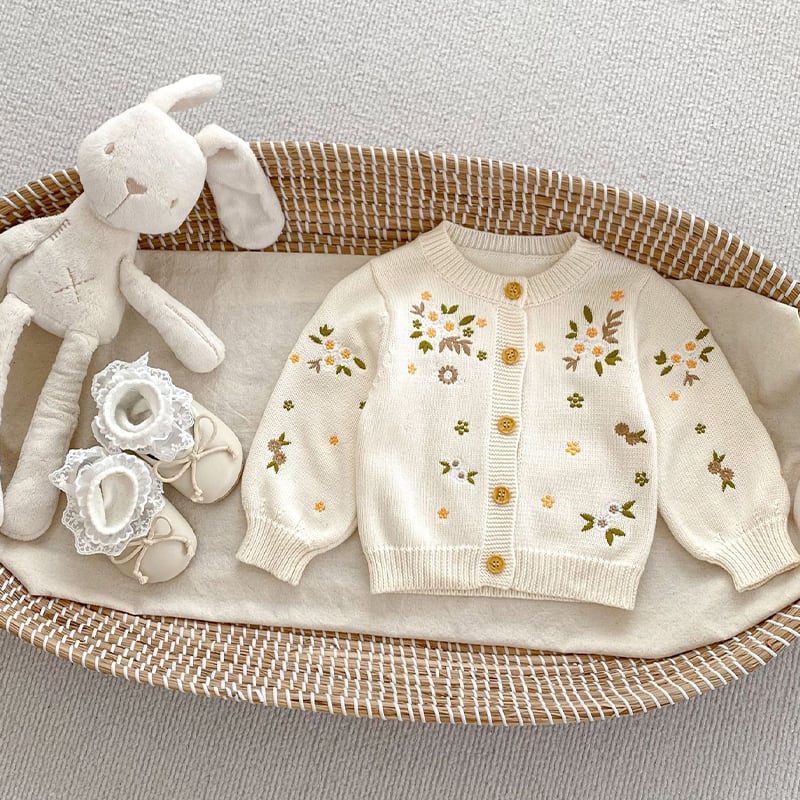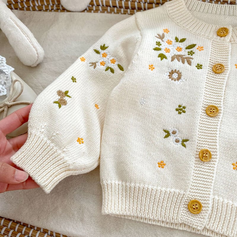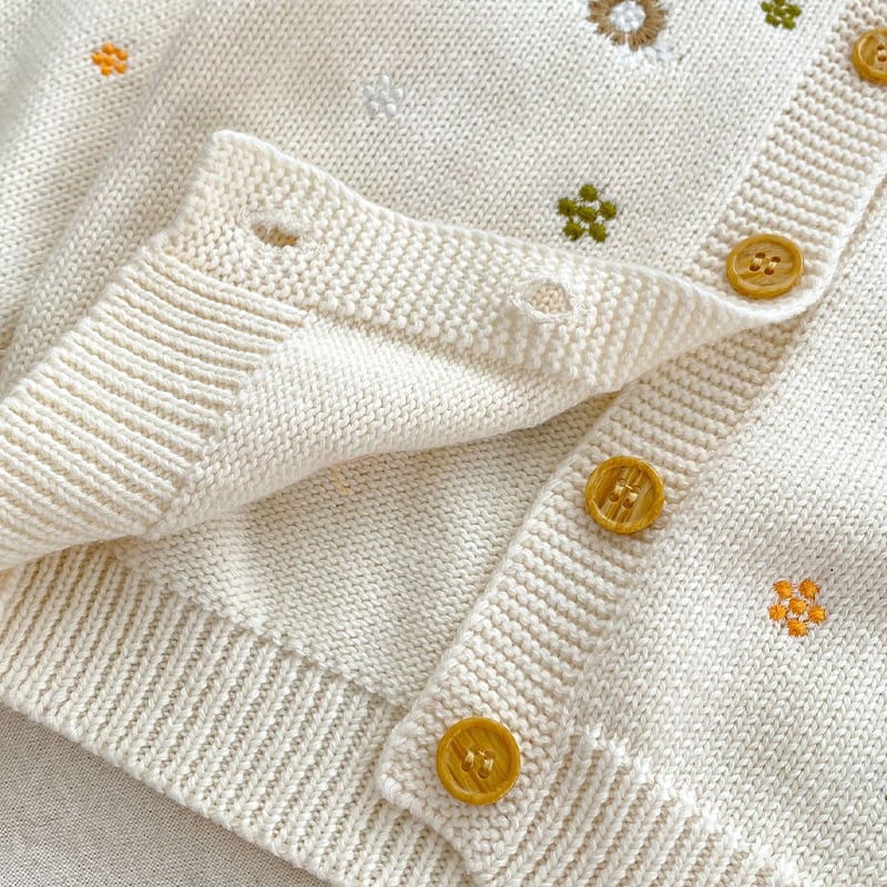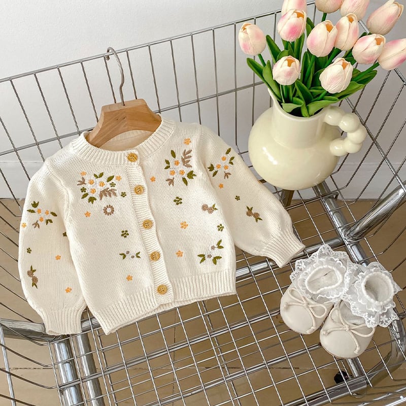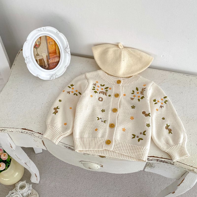 【BABY&KID】春作小花刺繍ニットカーディガン