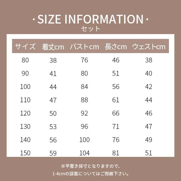 ■カラー:ワンピース/セットアップ ■サイズ:80/90/100/110/120/130/140/150CM 【ご購入前に】 ご利用ガイドを必ずお読み下さい。 ○商品画像と実物の色には多少見え方に誤差がございます。 ○サイズは平置きサイズとなりますので測り方により誤差が出る場合がございます。 ○海外製品のため、日本製より縫製等が若干劣る場合がございます。 ○お取り寄せ先の情報との誤差により、在庫を確保できない場合がございますので予めご了承くださいませ。 発着期間:ご注文を頂いてから、3日~14日程度(休業日除く)で発送致します。 発送後はお客様に発送通知メールを送りしております。お届けは発送通知メールご確認後より3~4日程度となります。 (★年末年始、大型連休の場合は別途サイト上にお知らせいたします。) ※状況によっては、在庫を確保できない場合がございますので予めご了承くださいませ。 shopの注意事項をよく読んでから、ご購入お願い致します。 (注意事項はトップ画面のABOUTからご確認下さい。)