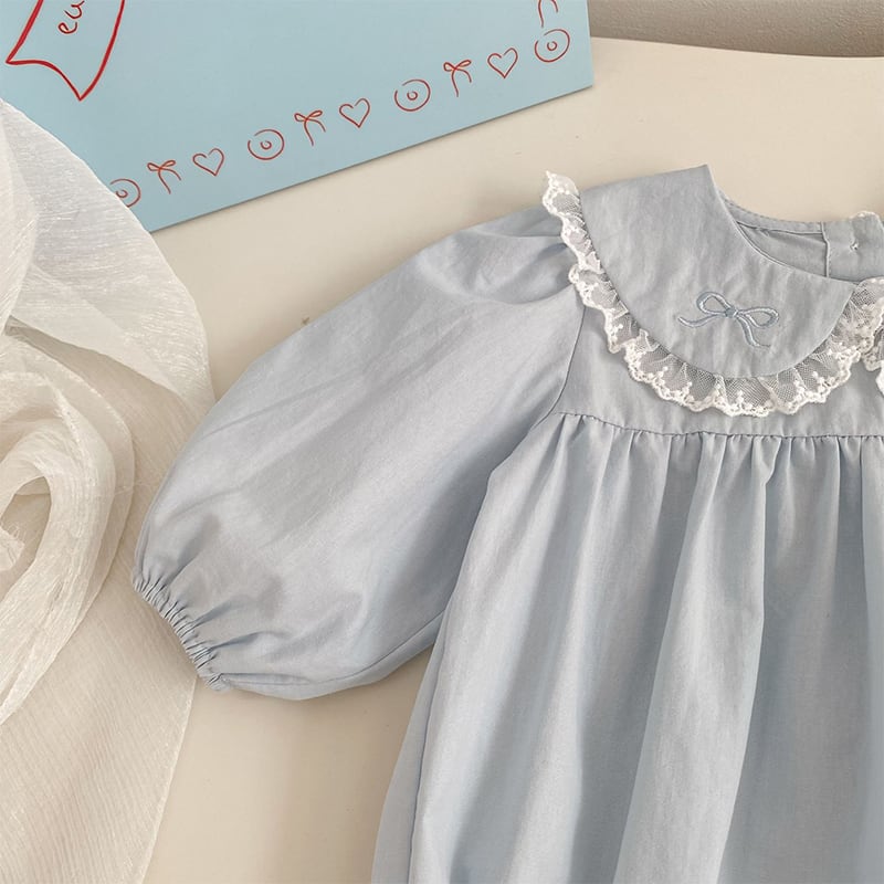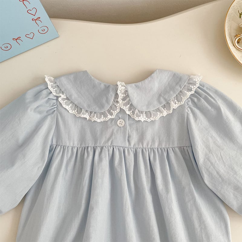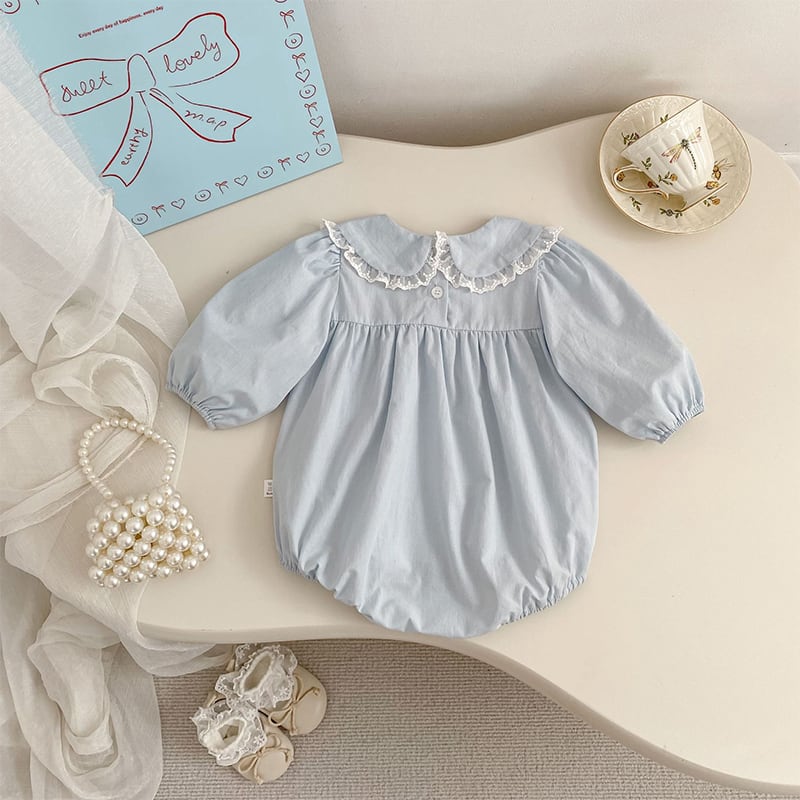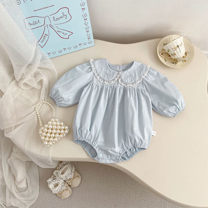 【BABY】春作パフスリーブピーターパンカラーロンパース