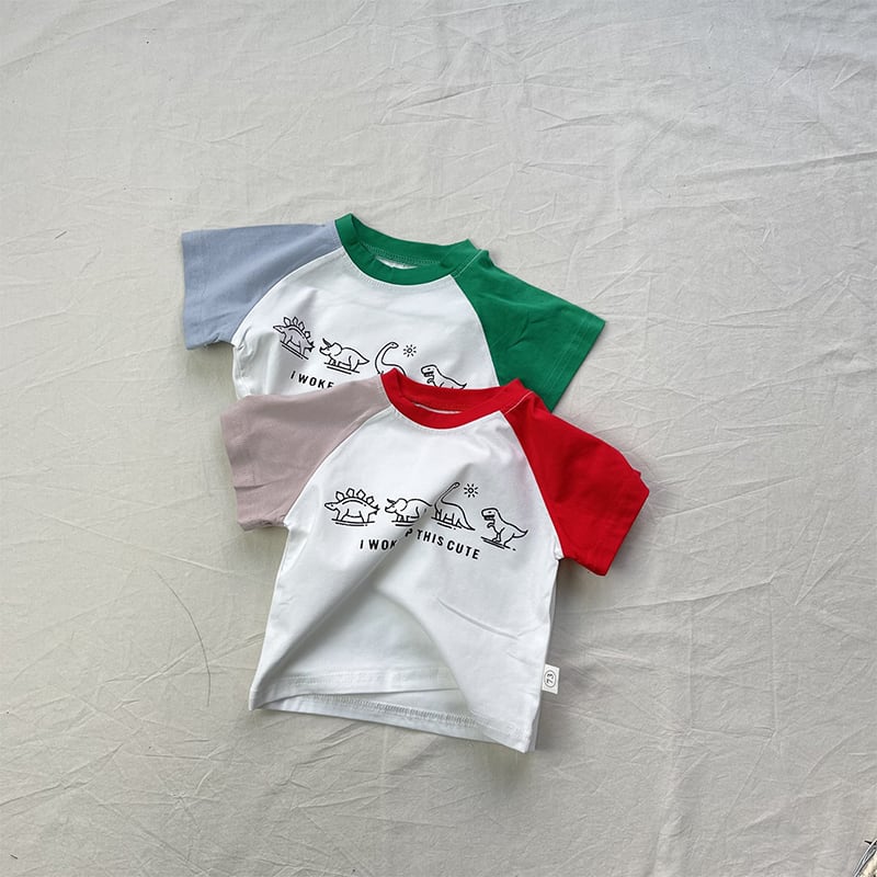 【BABY&KID】夏作恐竜プリント切り替えラグランTシャツ