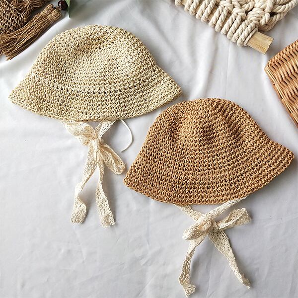 【BABY&KID】親子コーデ レース紐付き麦わら帽子 全2色