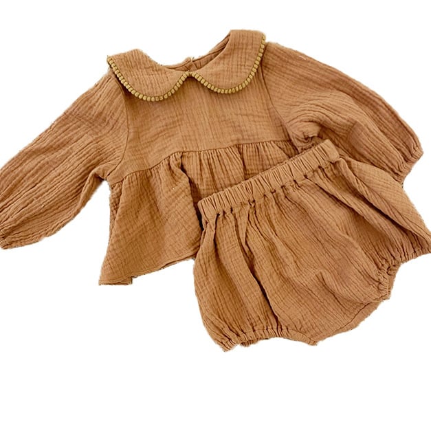 【3.7即納・BABY】フリル襟長袖トップス+かぼちゃパンツ