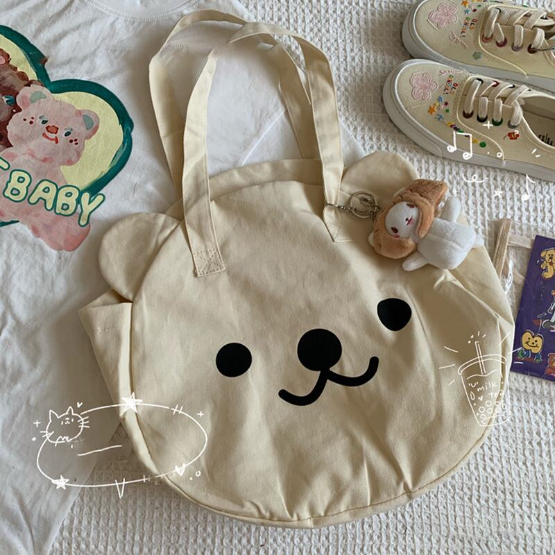 【GOODS】クマミミクマ柄ぬいぐるみ付き大容量トート ショルダー