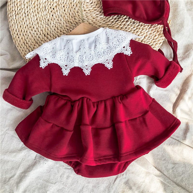 【BABY】クリスマスワンピースロンパース&刺?レース襟&帽子