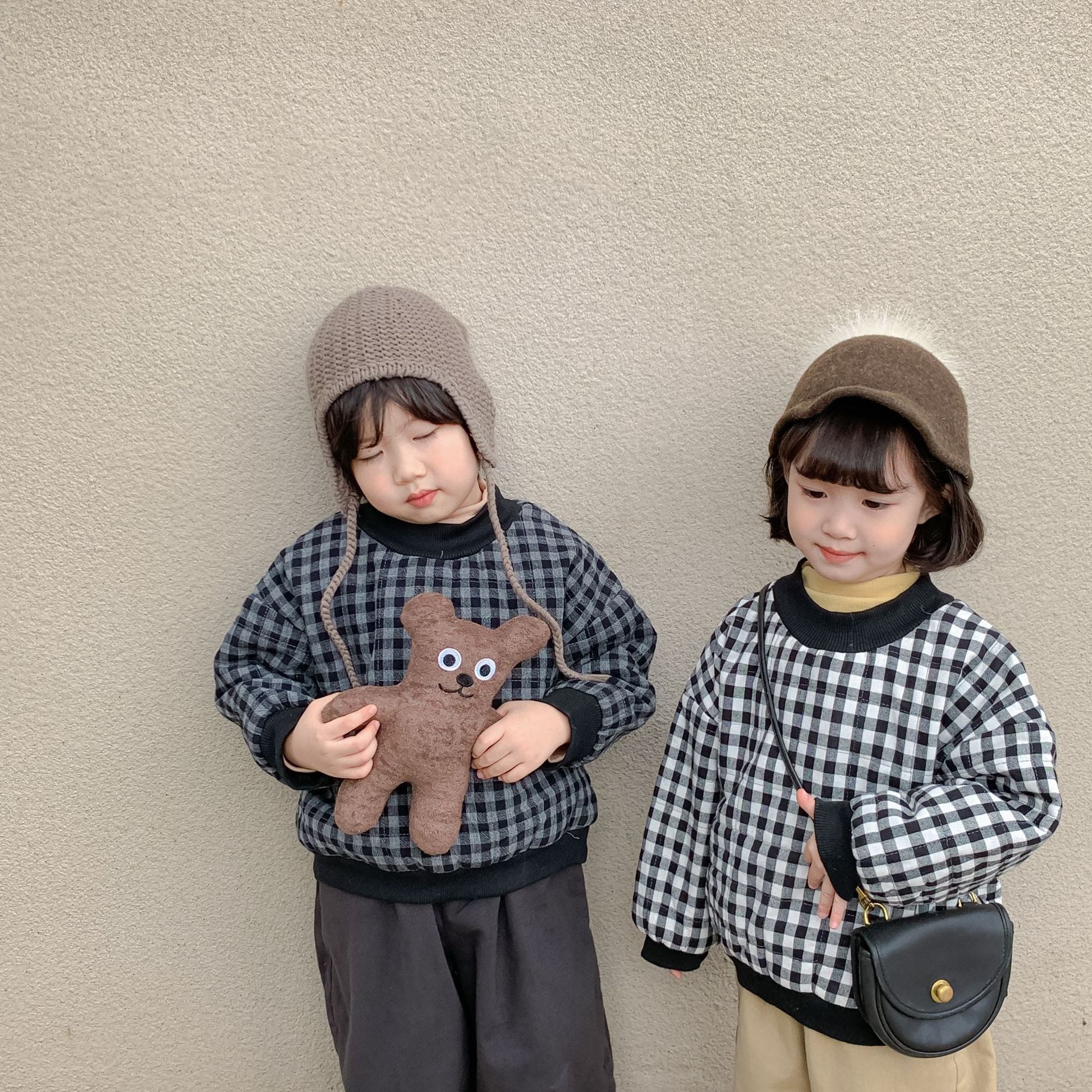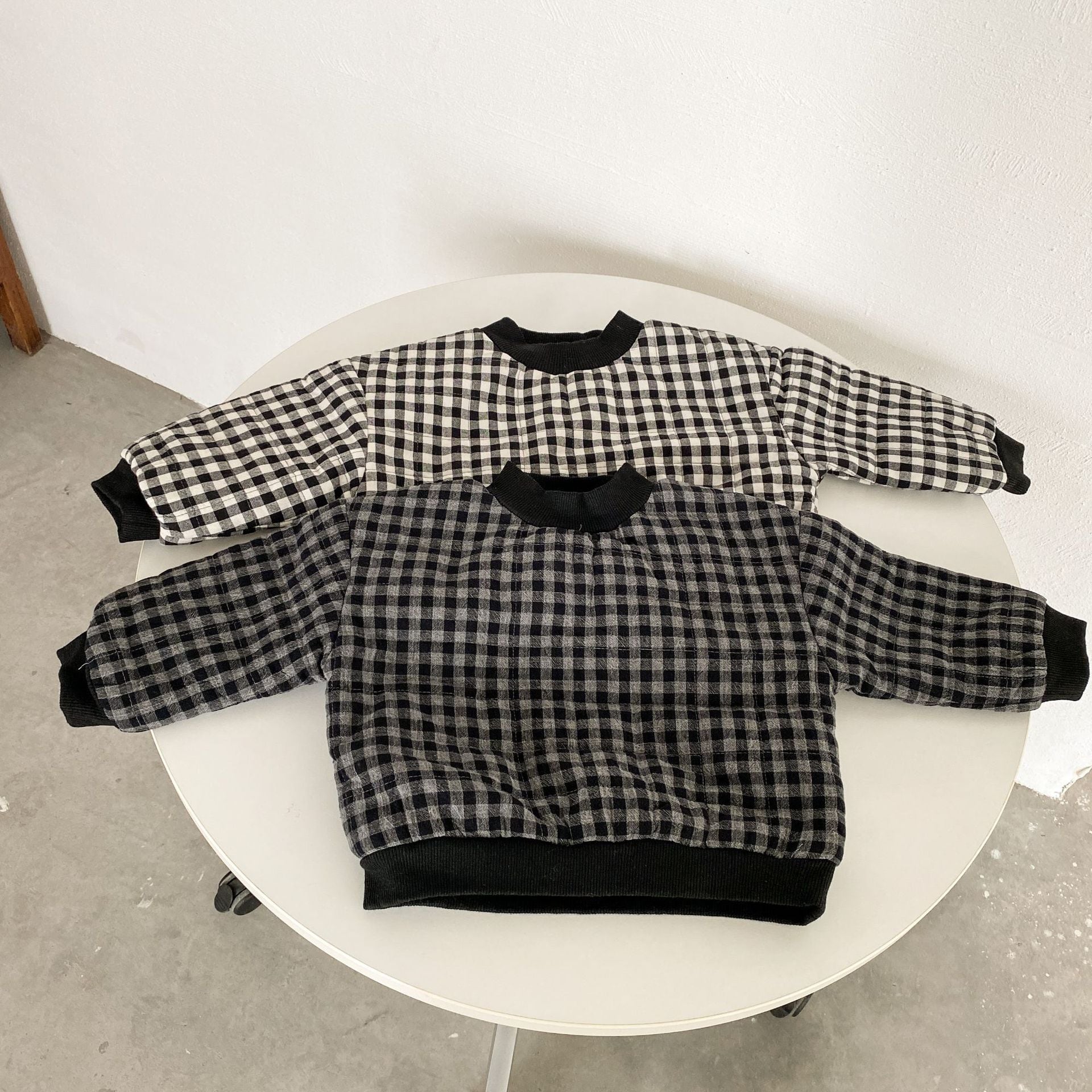 【3.7即納BABY&KID】チェック柄ハーフネック裏起毛トップス 全2色