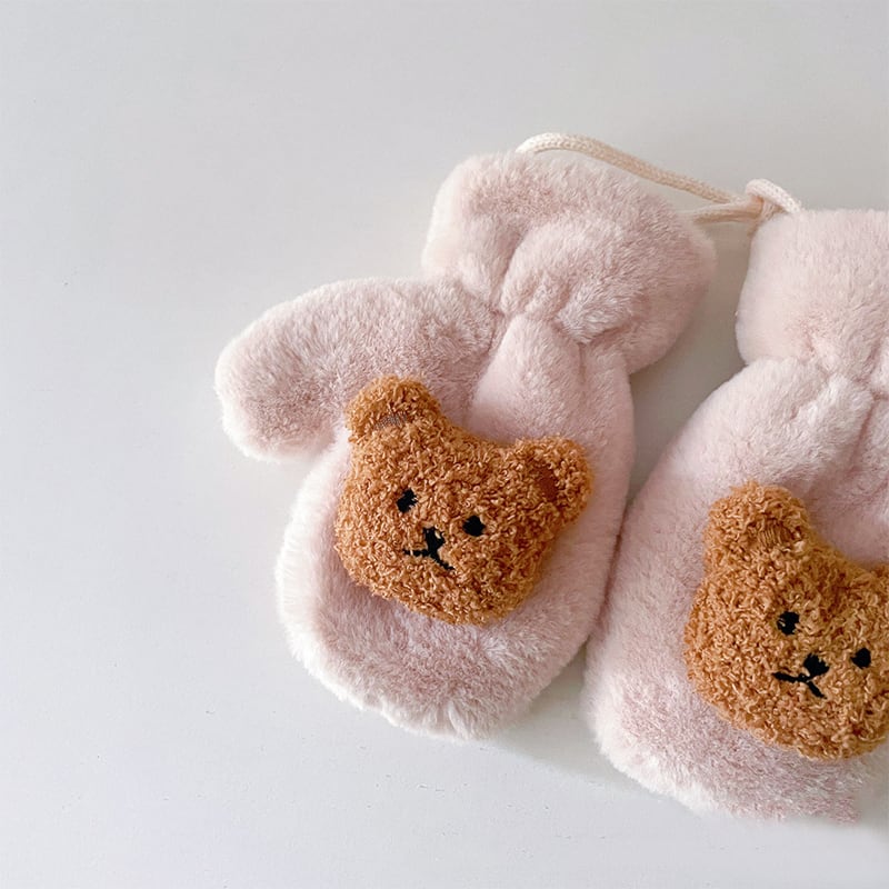 【BABY&KID】クマちゃんもこもこミトン手袋(紐付き) 全5色