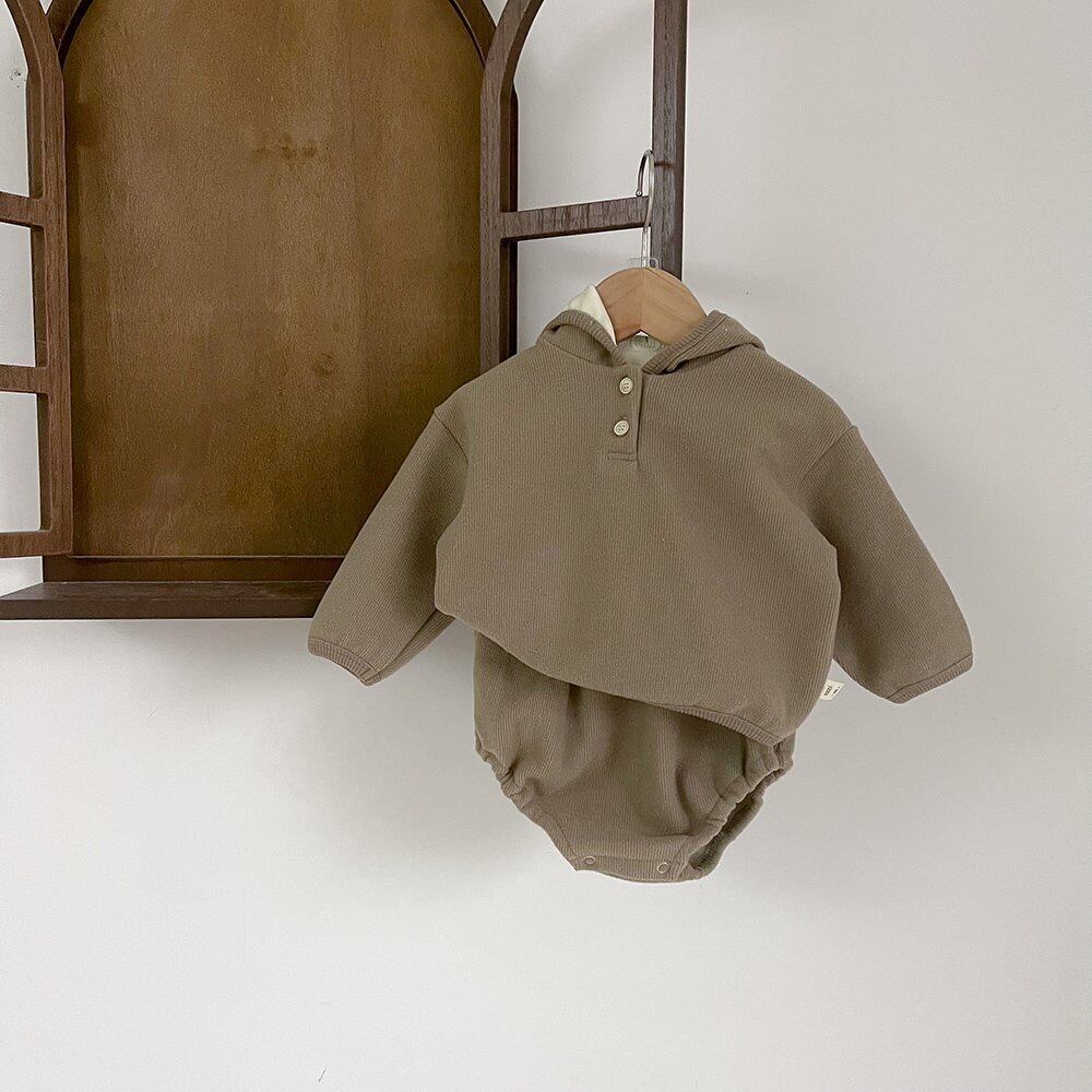 【3.7即納BABY】裏起毛厚着クマミミフードパーカー&かぼちゃパンツセット 全2色