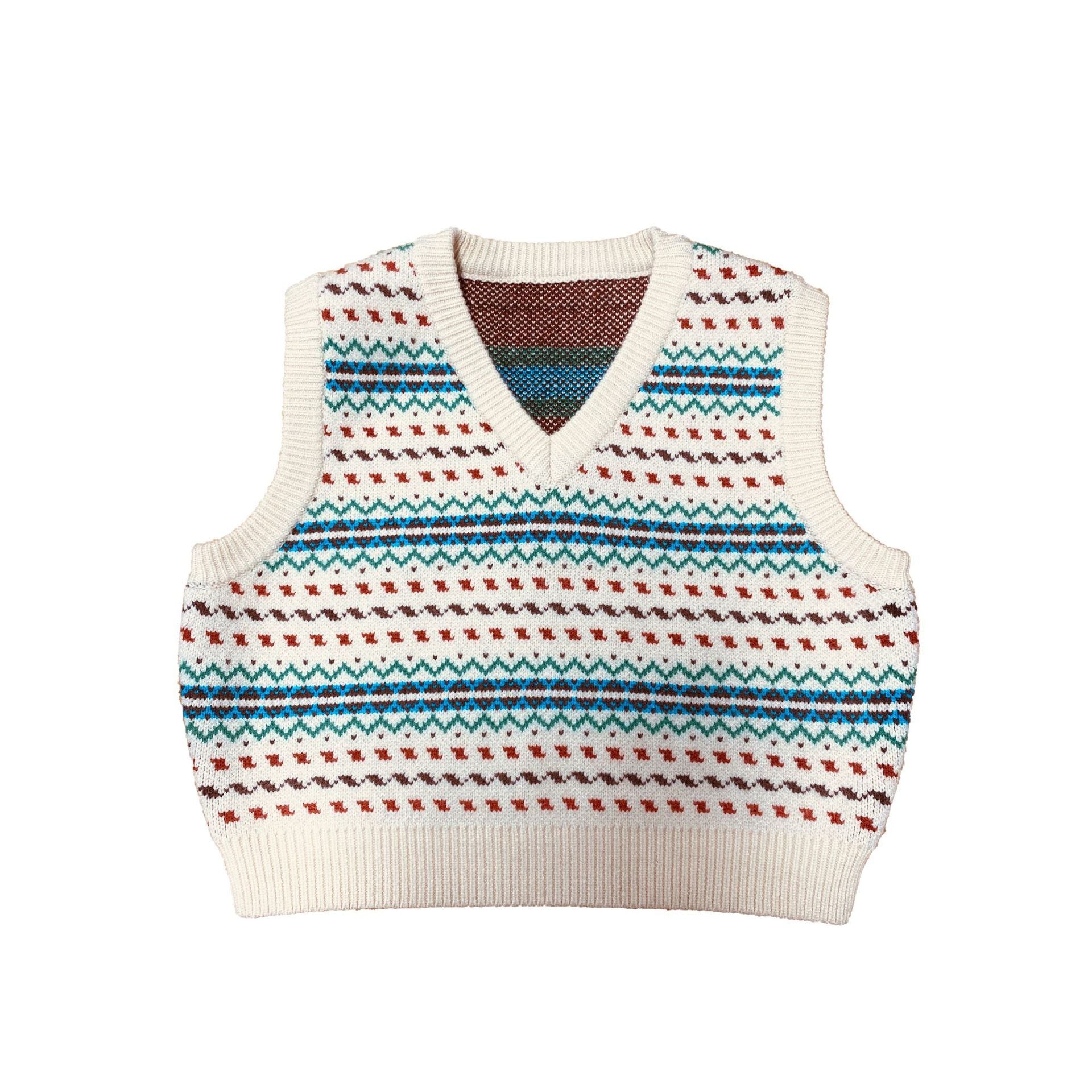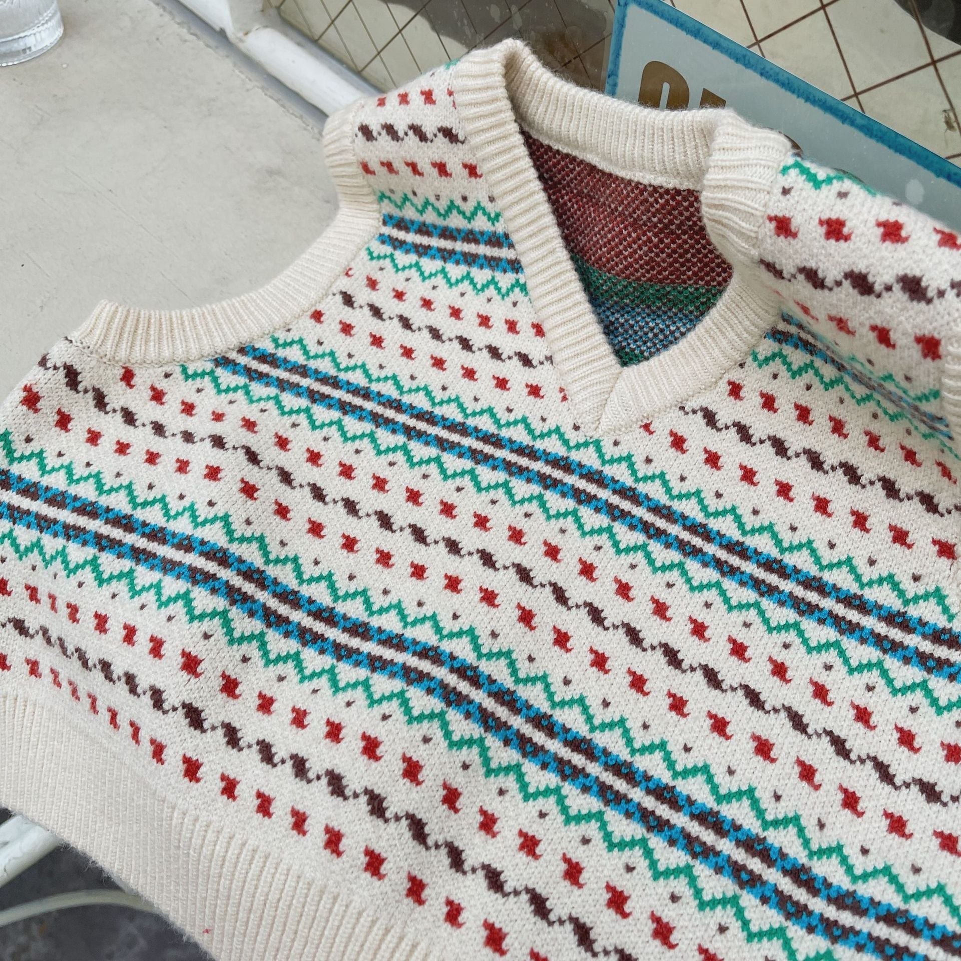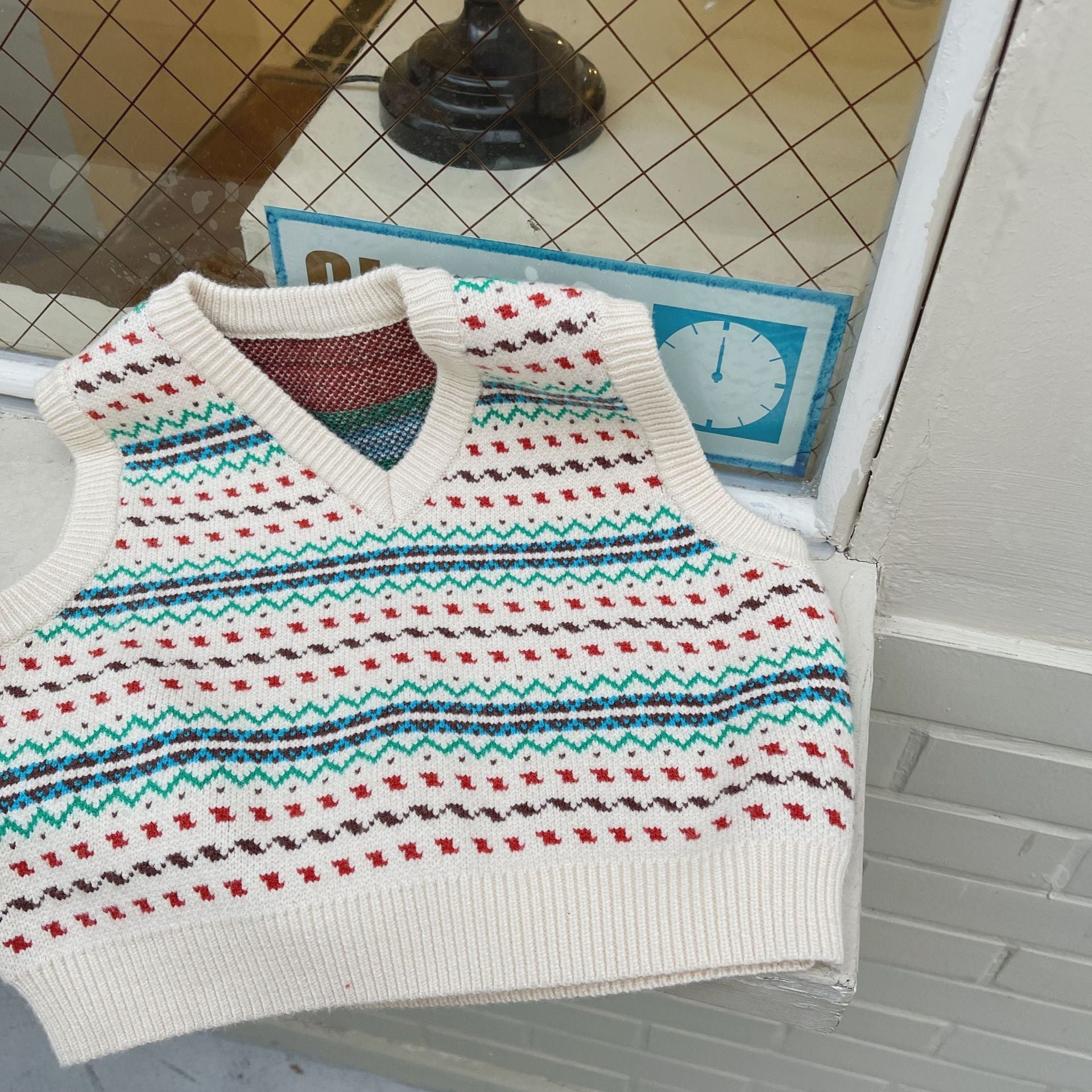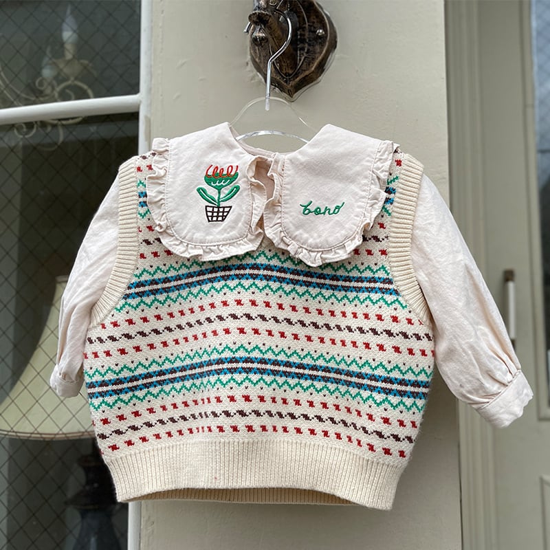【3.7即納BABY&KID】小花柄Ⅴネックニットベスト