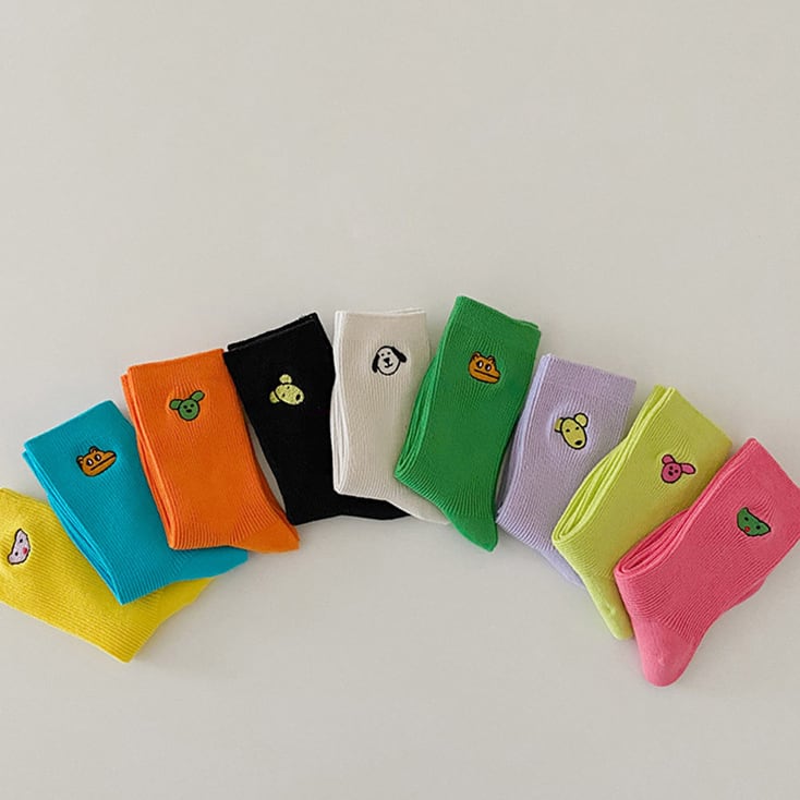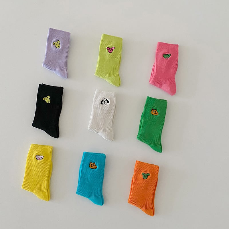 【BABY&KID】カラフル刺繍動物柄ロングソックス3点セット 全3種類