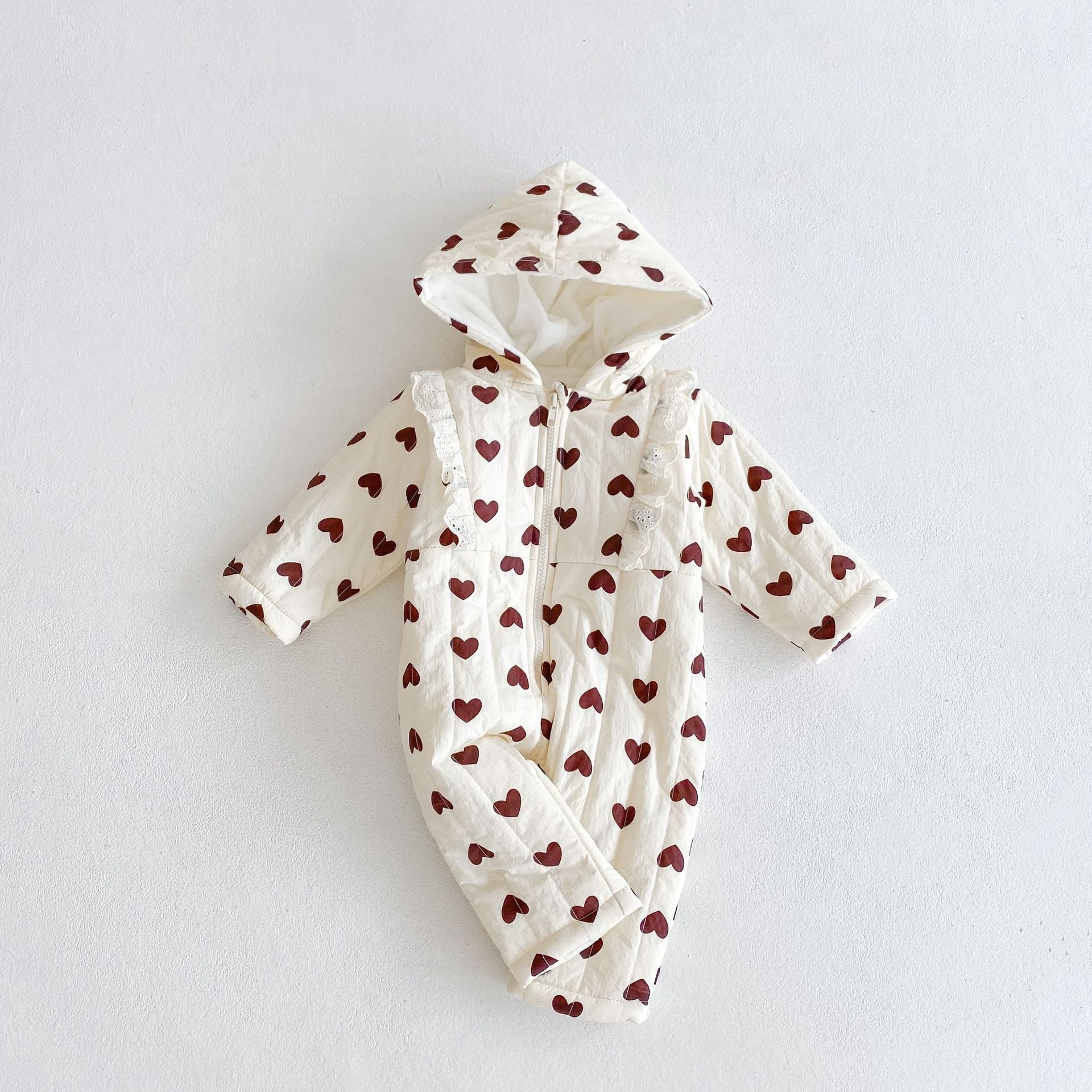 【3.7即納BABY】超暖かいレースフリルフード付きオールインワン 全2種類