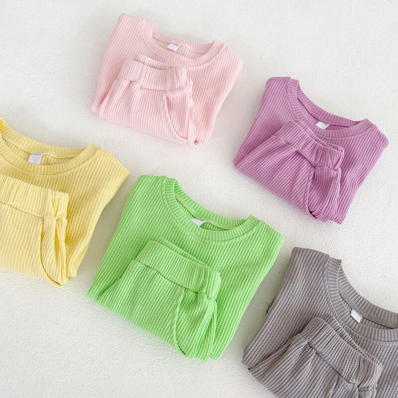 【3.7即納BABY&KID】夏新作ワッフルピュアカラートップス&ボトムスセットアップ