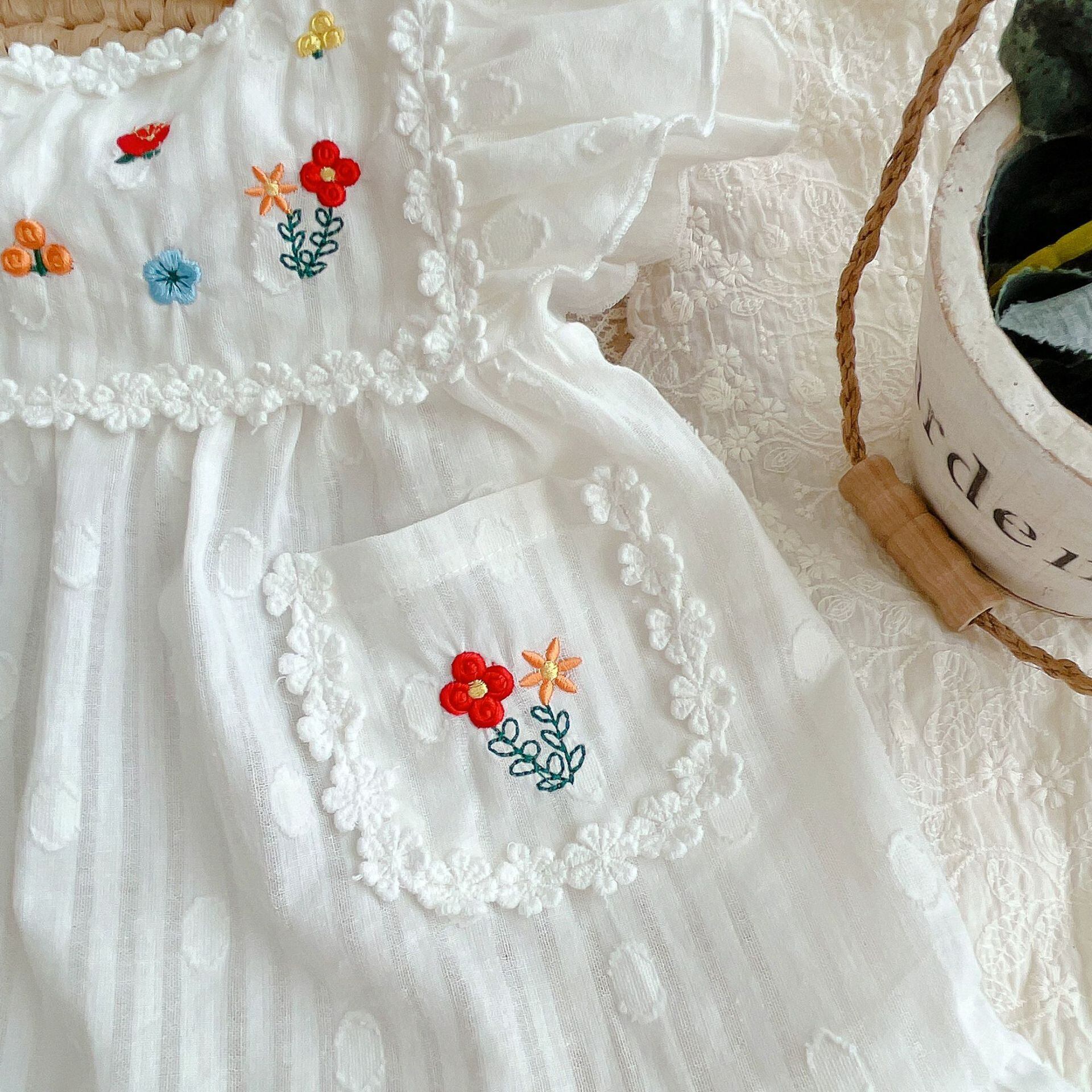 【BABY&KID】夏新作フライングスリーブ刺?フラワー柄ロンパースORワンピース (リンクコーデ)