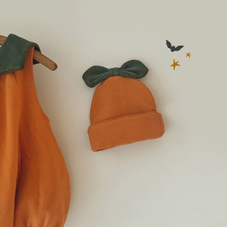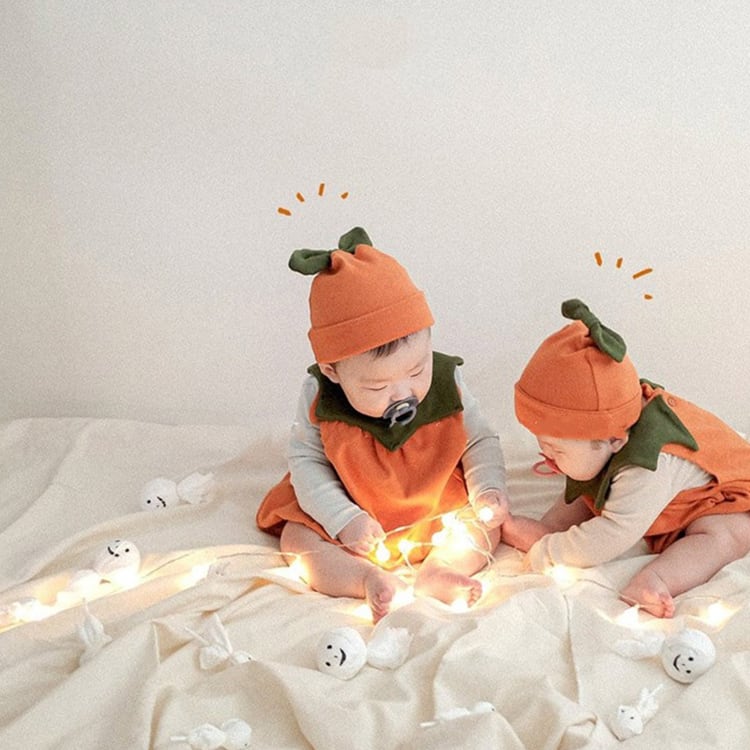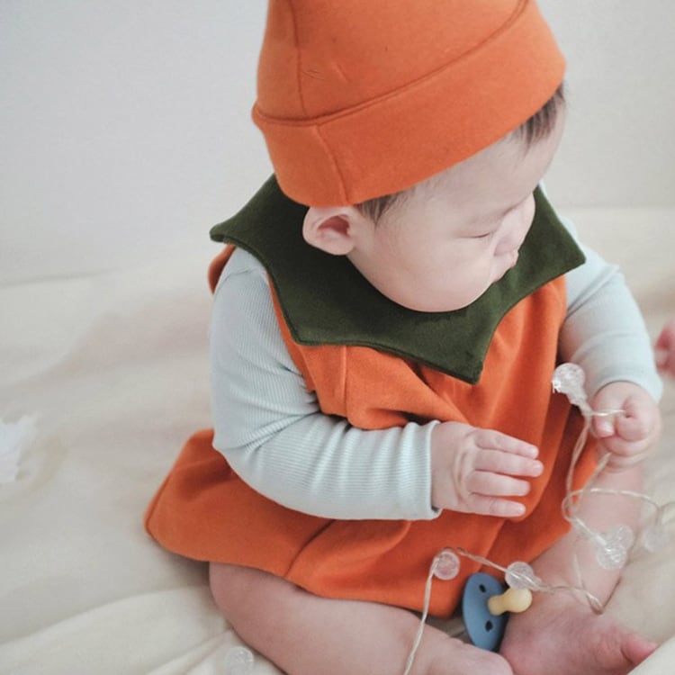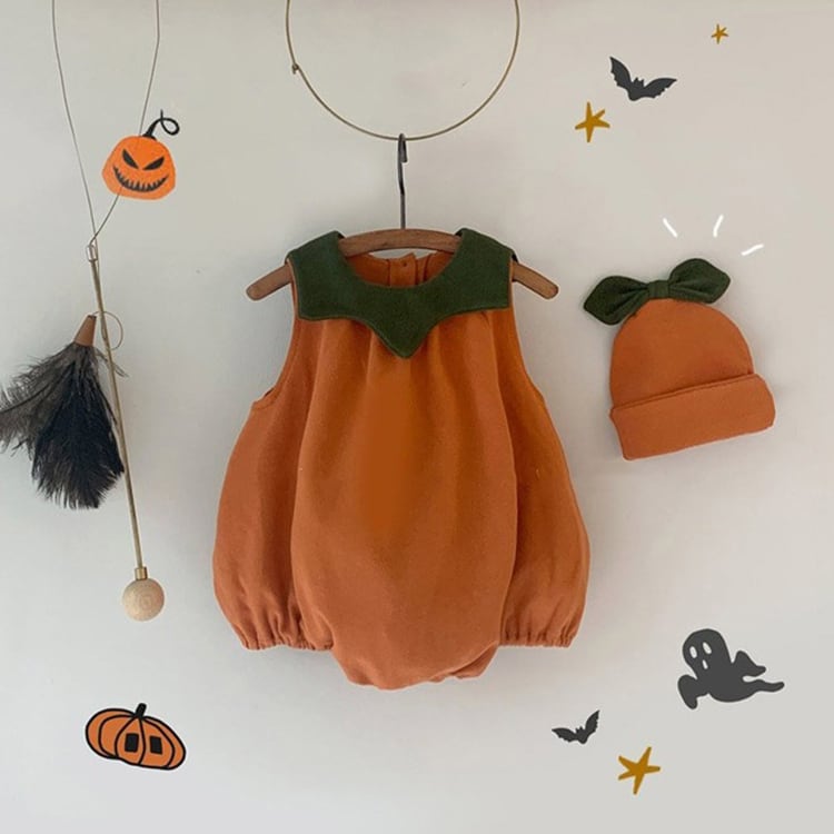 【BABY】秋新作ハロウィンカボチャ形ノースリーブロンパース 帽子付き