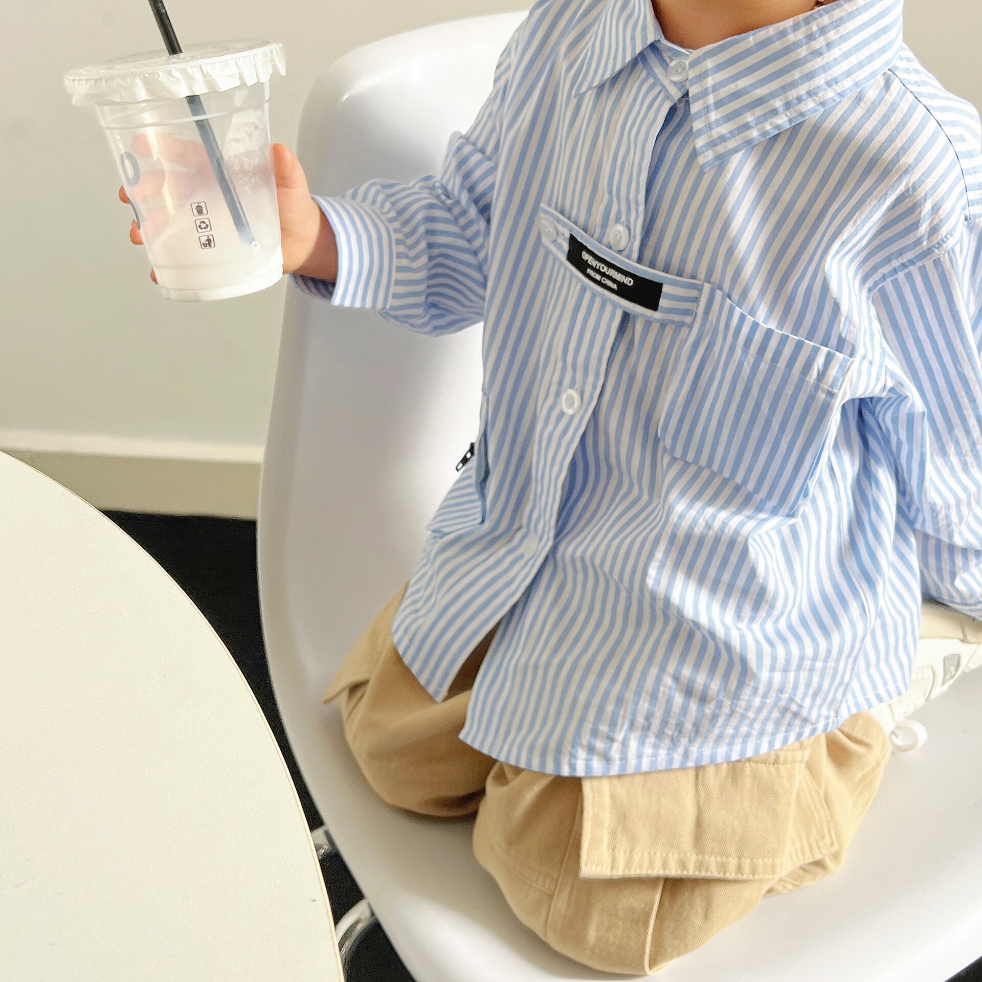 【BABY&KID】春新作ストライプデザイン感バーサタイルシャツ