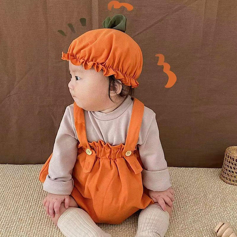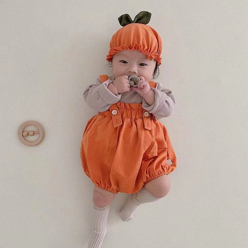 【BABY】ハロウィンキュートサロペットかぼちゃパンツ&帽子