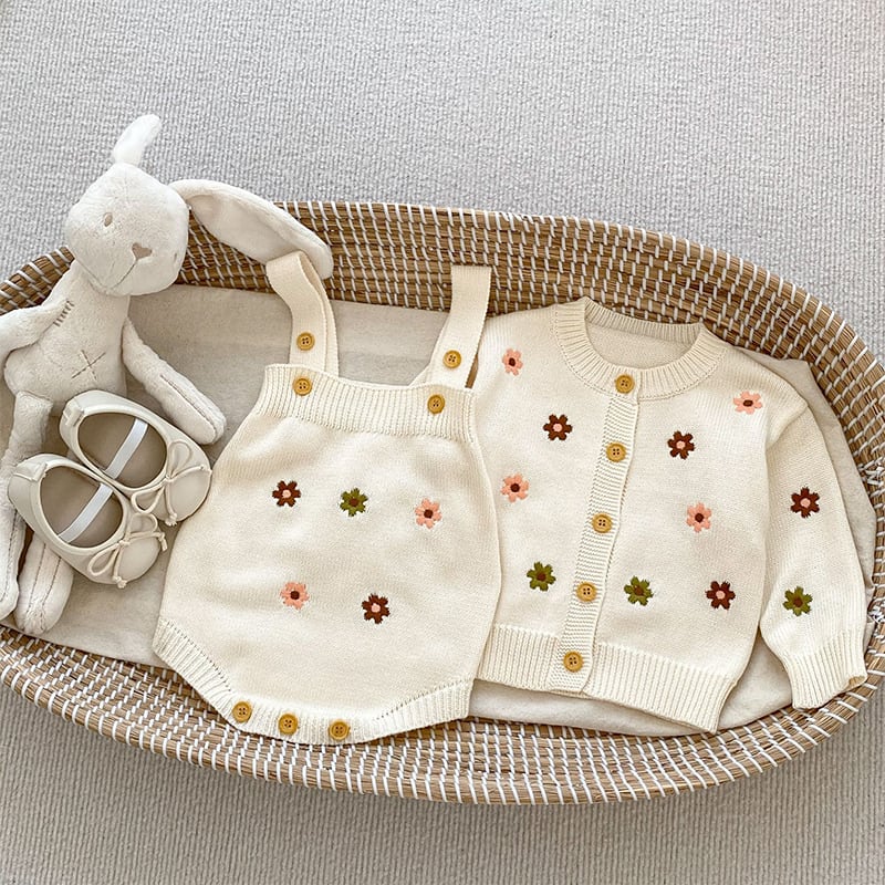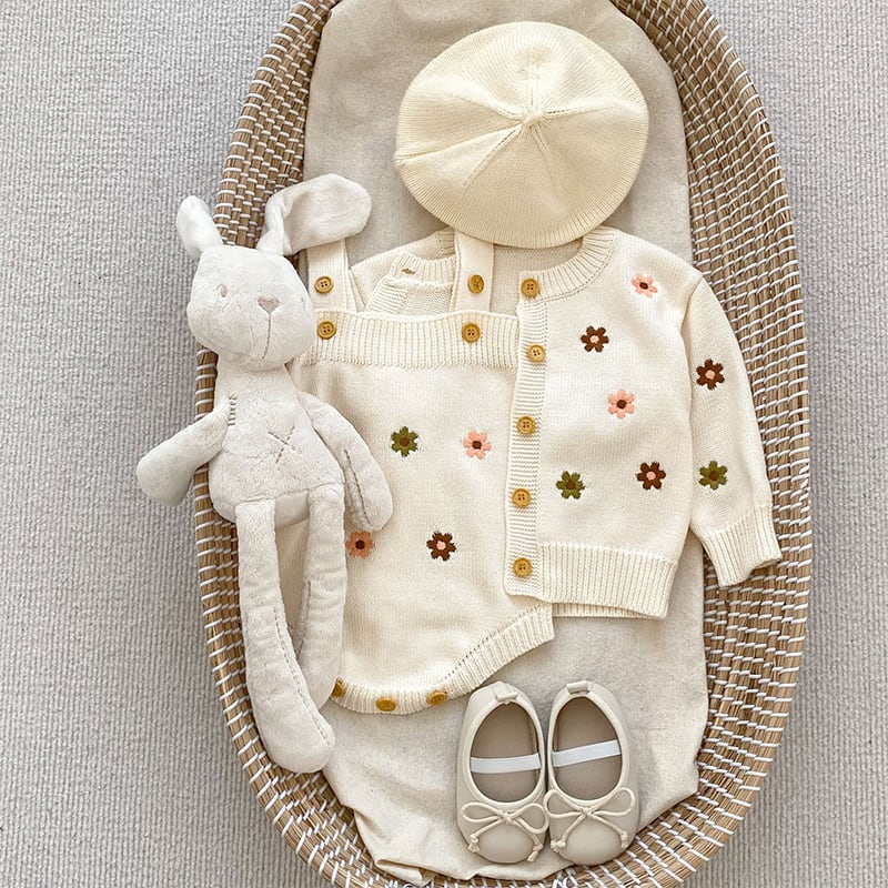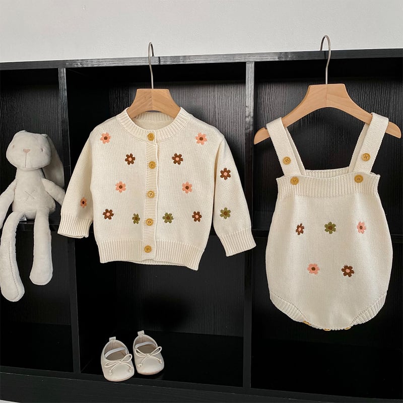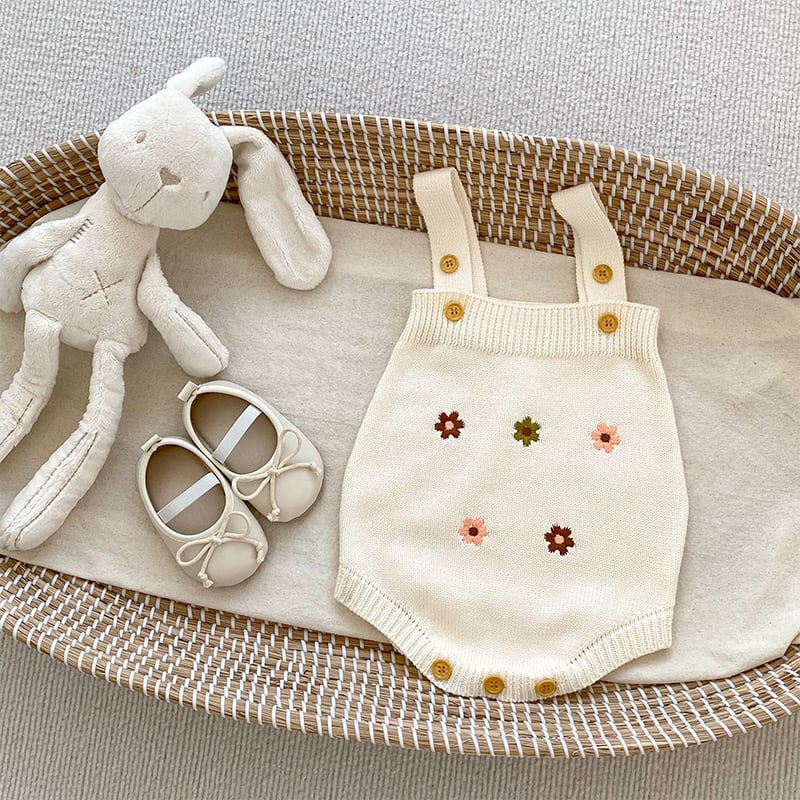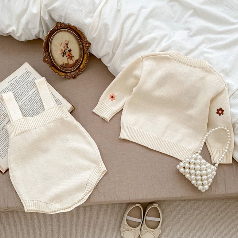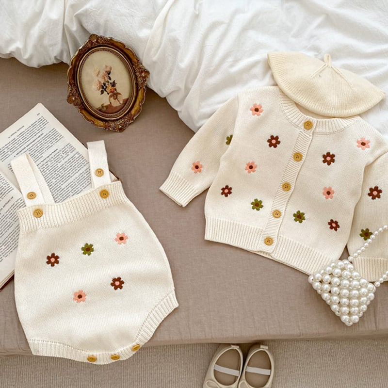 【BABY&KID】秋新作ミニマリズム花柄ニットロンパース