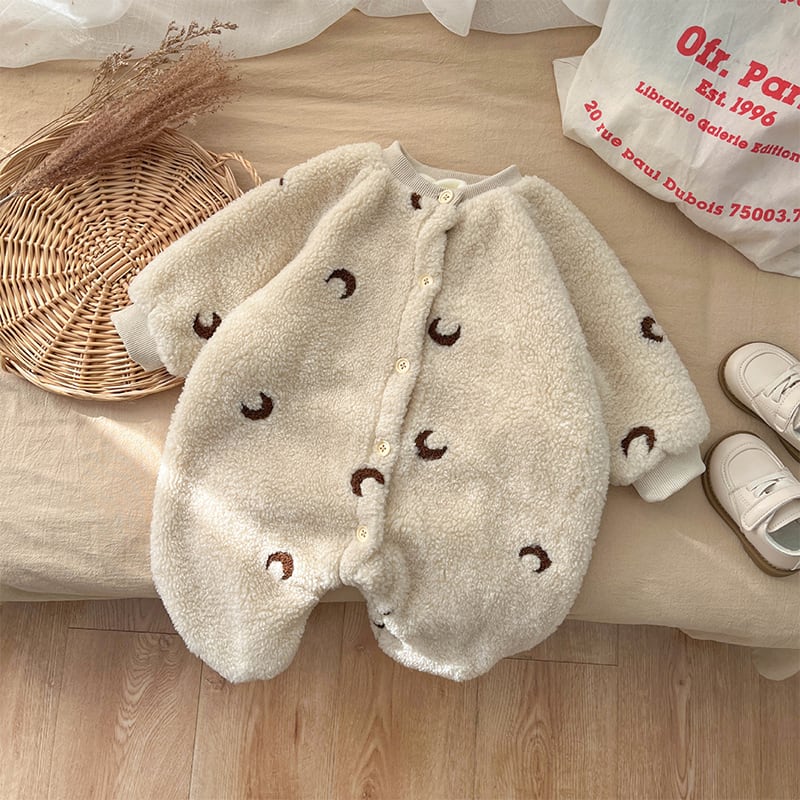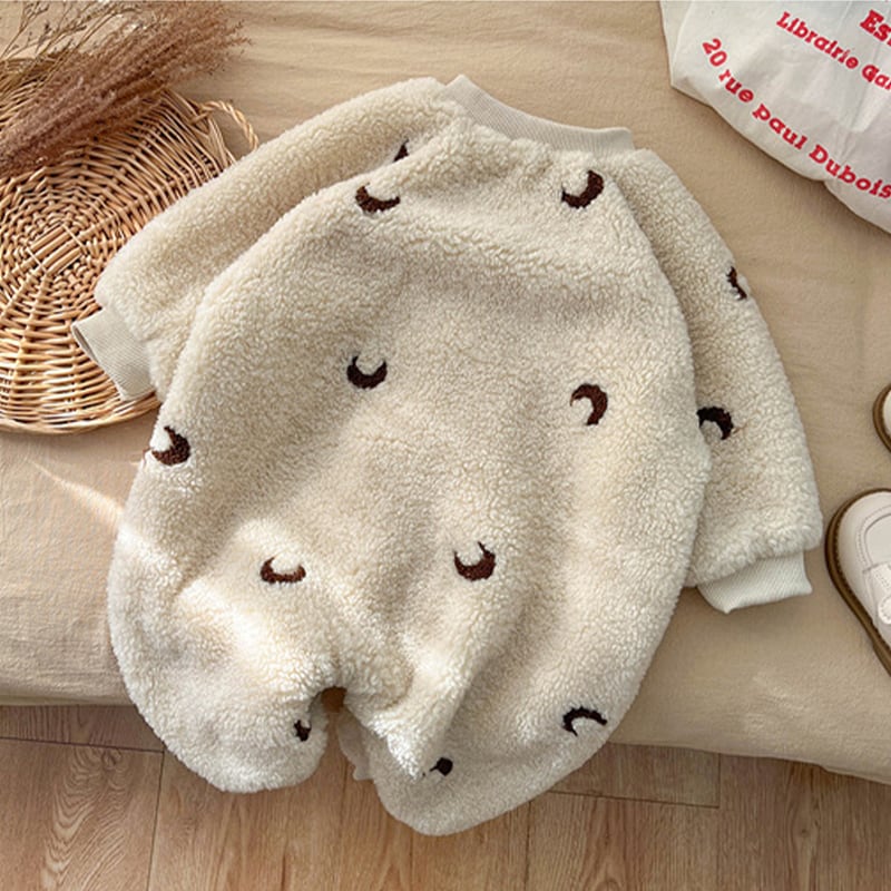 【BABY&KID】冬新作月柄もこもこ起毛オールインワン