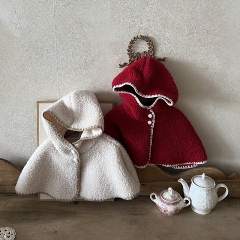 【BABY&KID】冬新作クリスマスもこもこボタン付きポンチョ 全2色