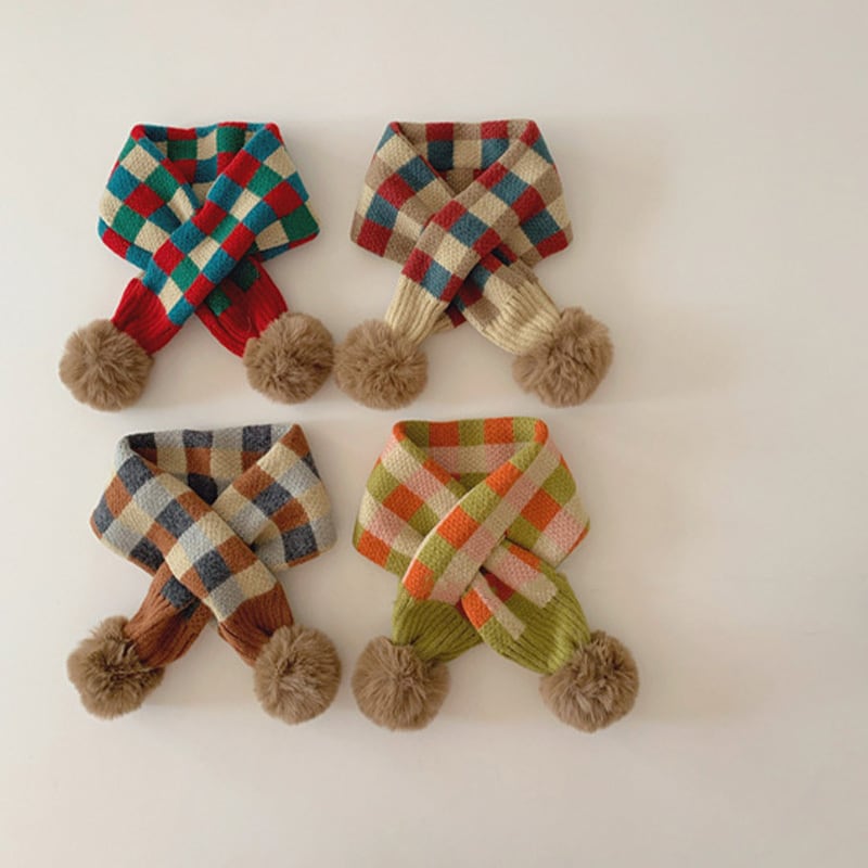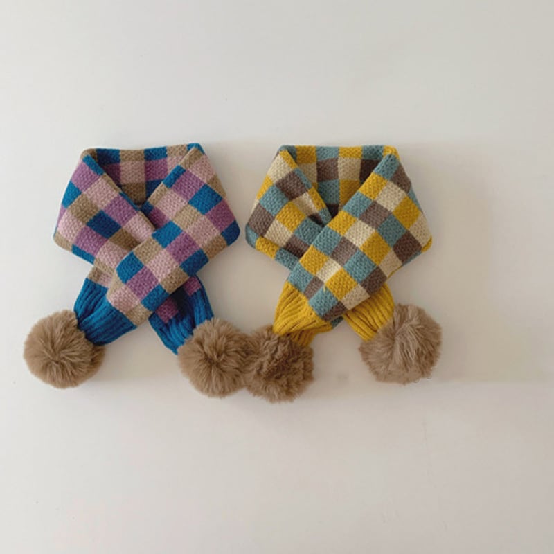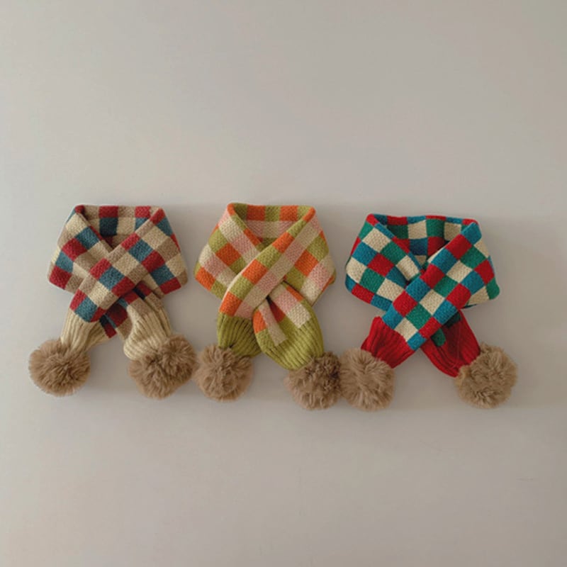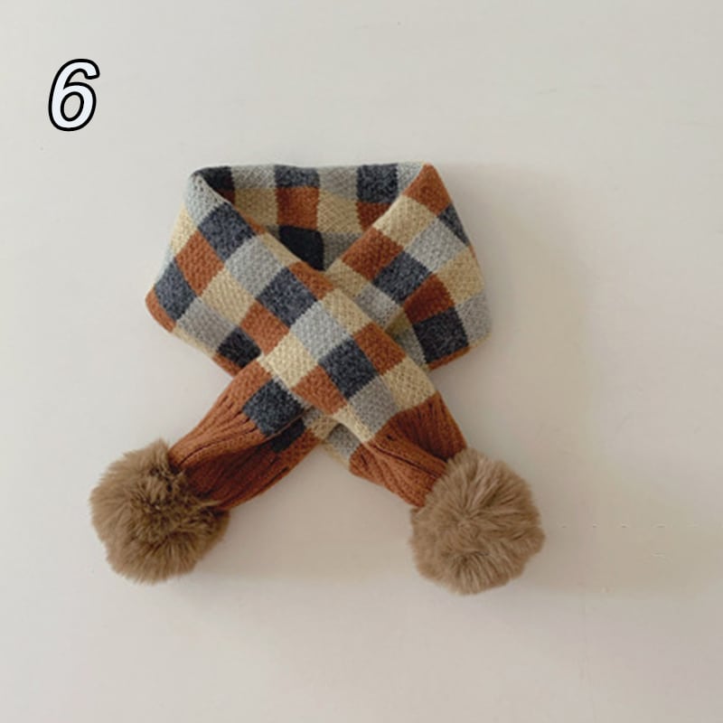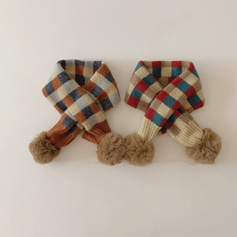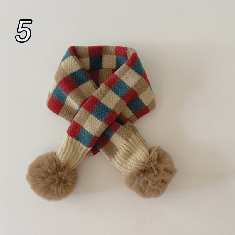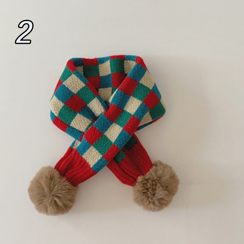 【BABY&KIDS】冬新作 チェック柄編みバイカラーニットスカーフ