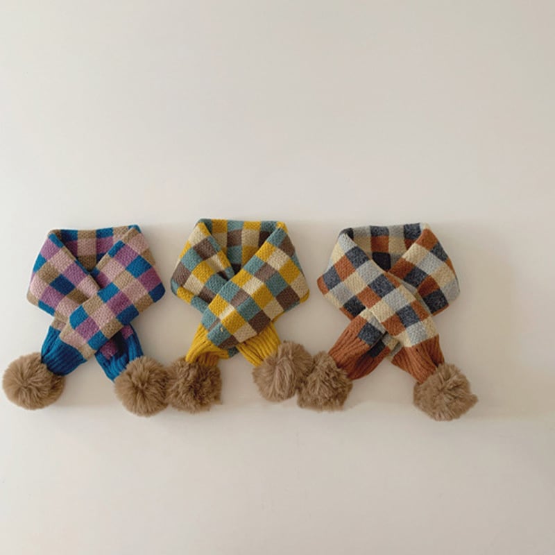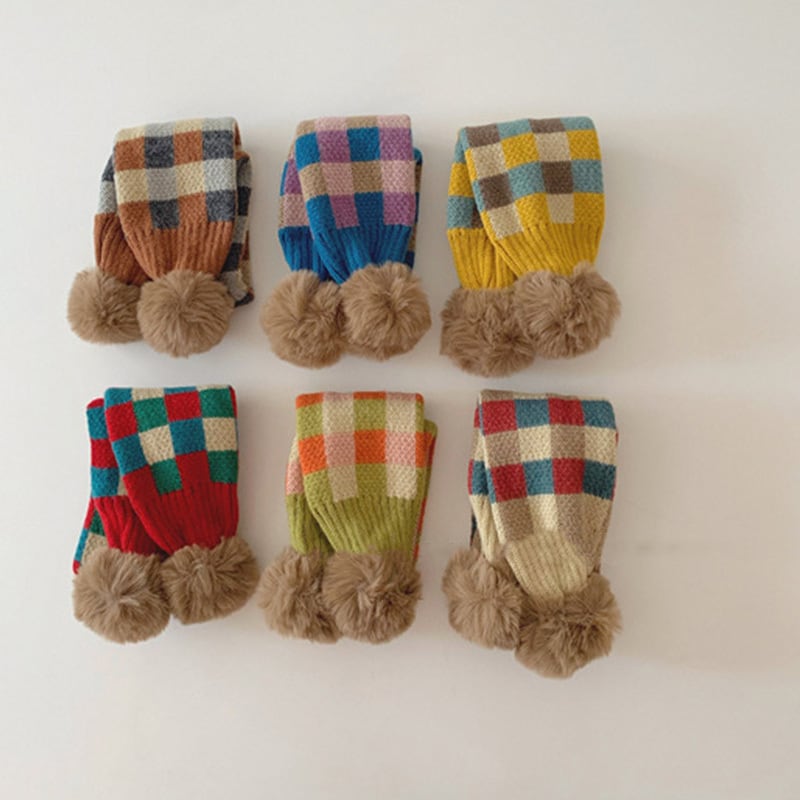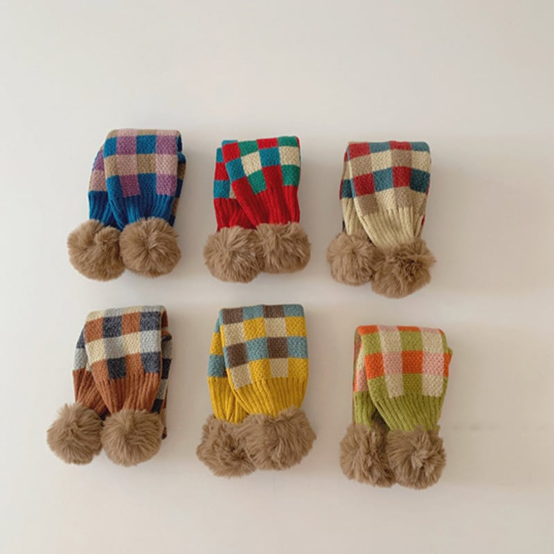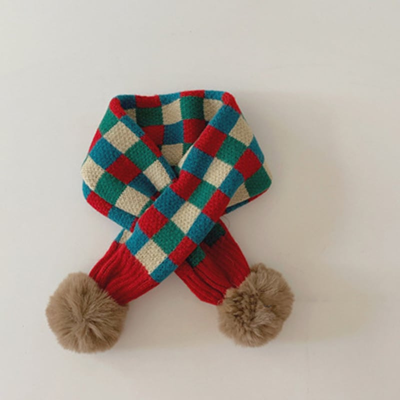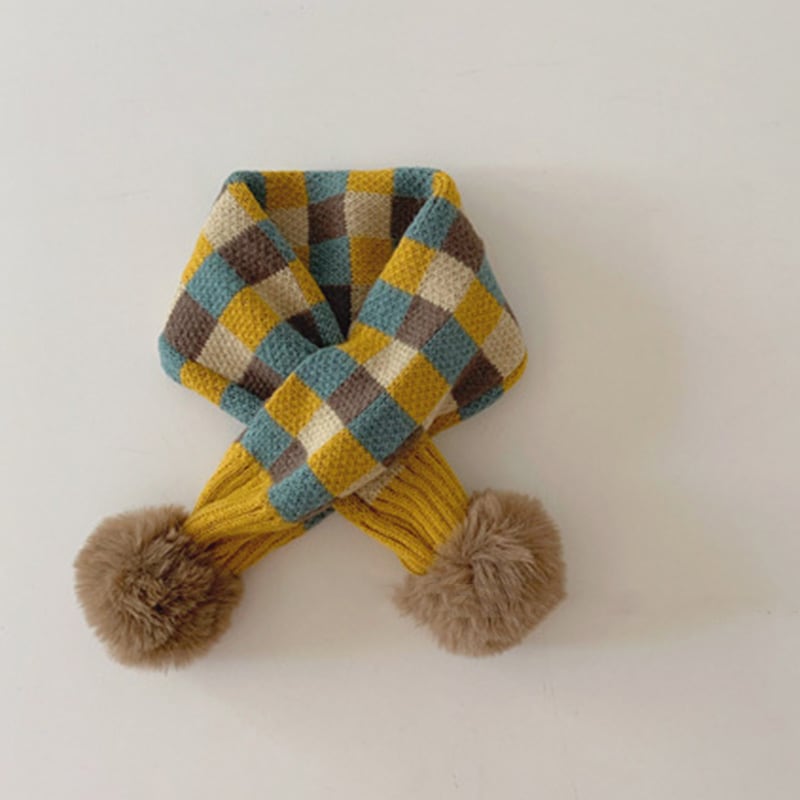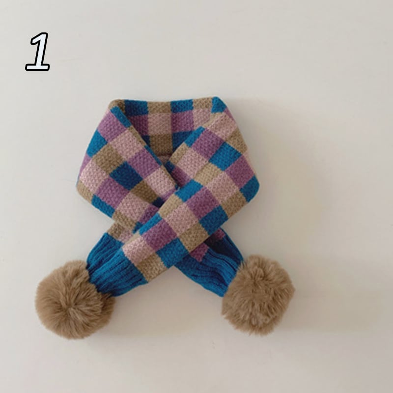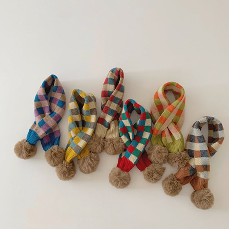 【BABY&KIDS】冬新作 チェック柄編みバイカラーニットスカーフ