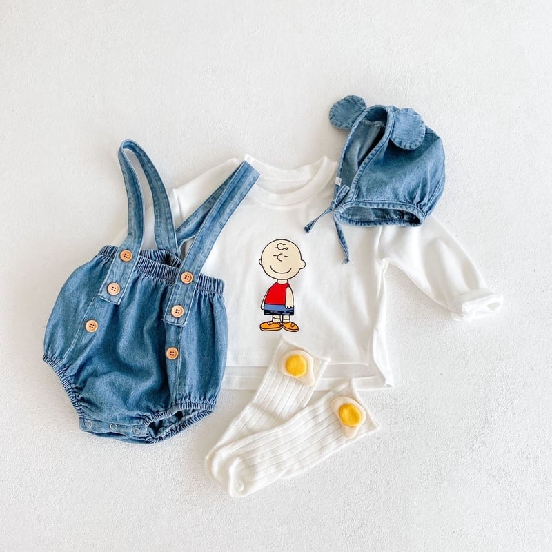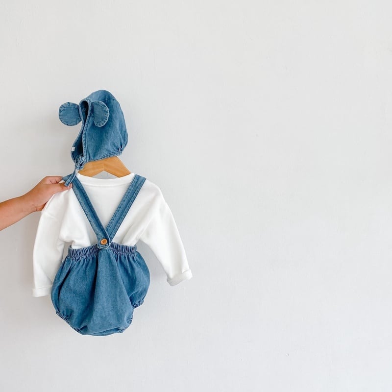 【BABY&KID】春新作帽子付きトップス+ロンパース3点セット